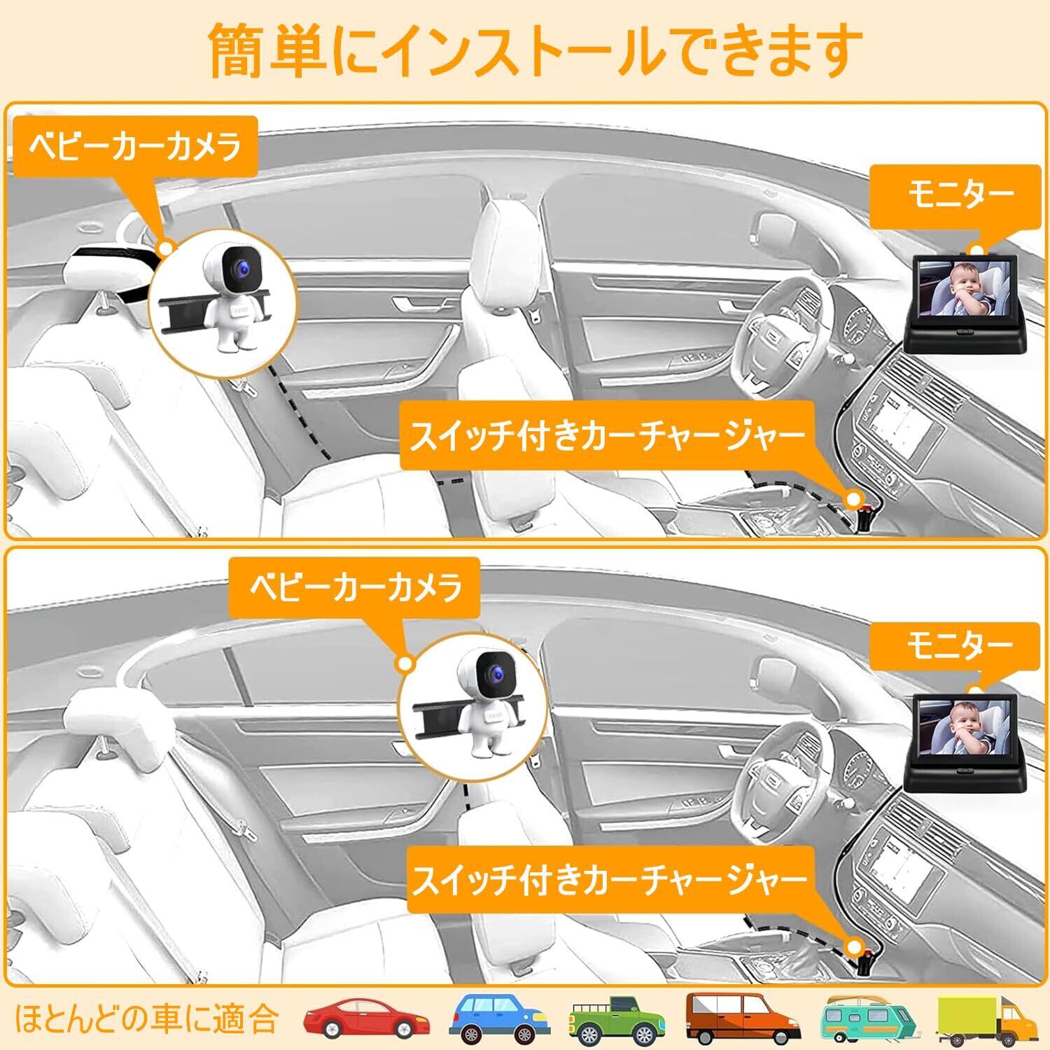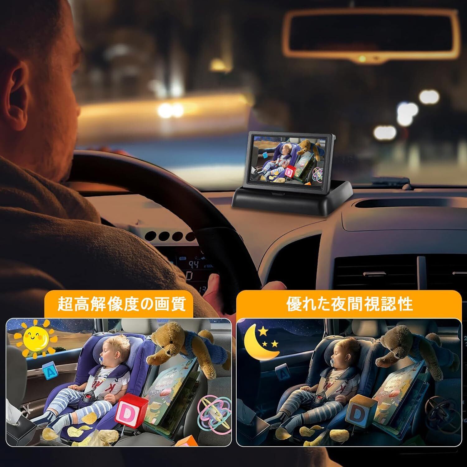 車載ベビーモニター ベビーモニター 車 ベビーカー ミラー カメラ 後部座席の赤ちゃんを見る ナイトビジョン機能付き カーミラーディスプレイ ワイドビュー 4.3インチ 子供カメラ AHD 1080P 車用ベビーモニター 12Vシガー電源日本語説明書付き (折りたたみ式)