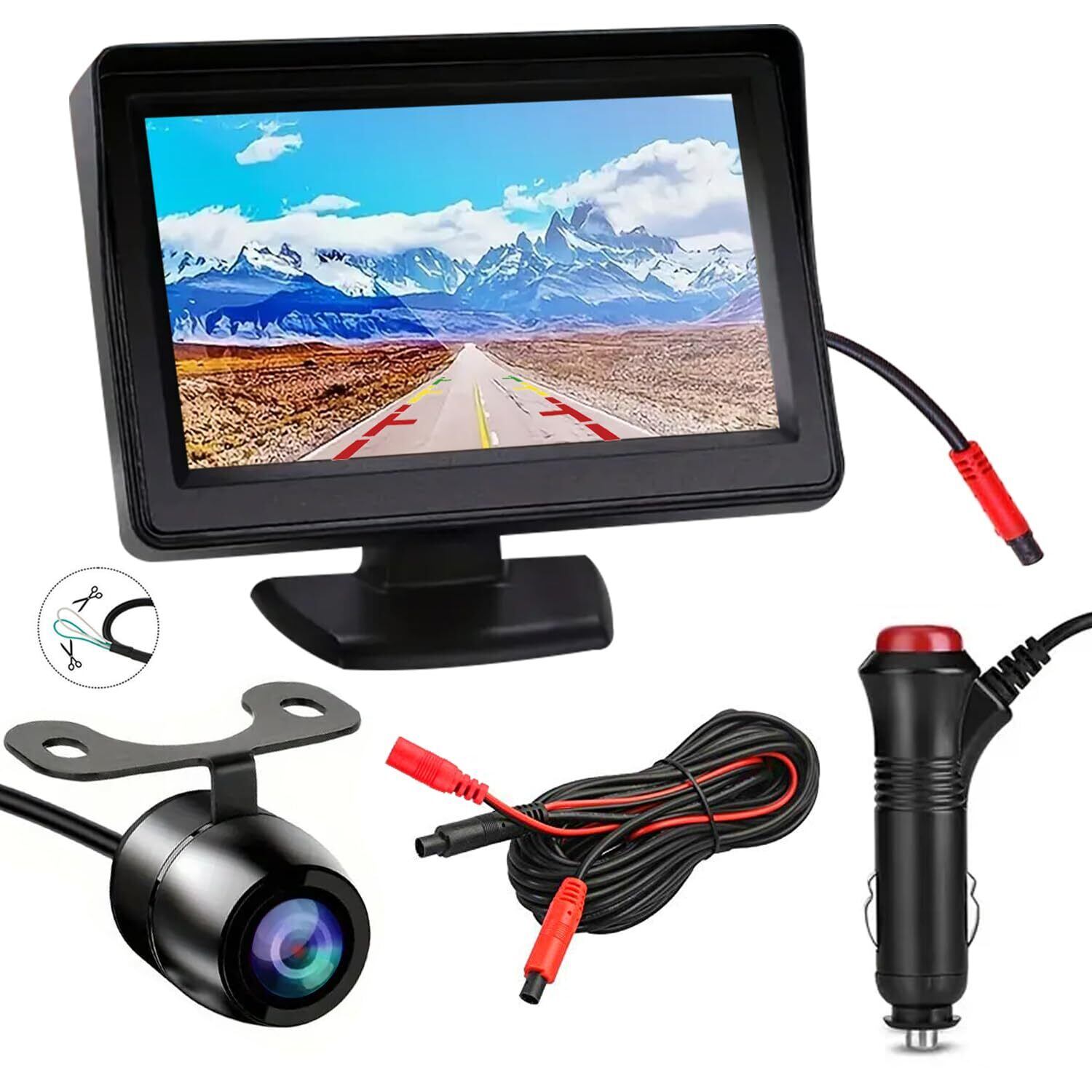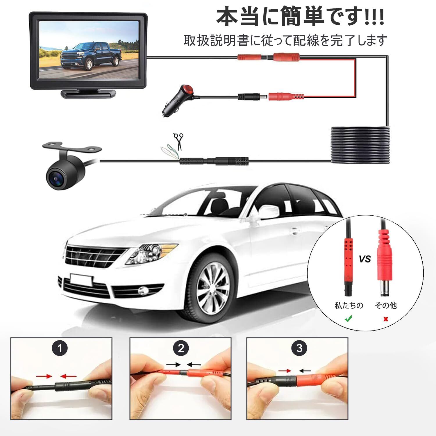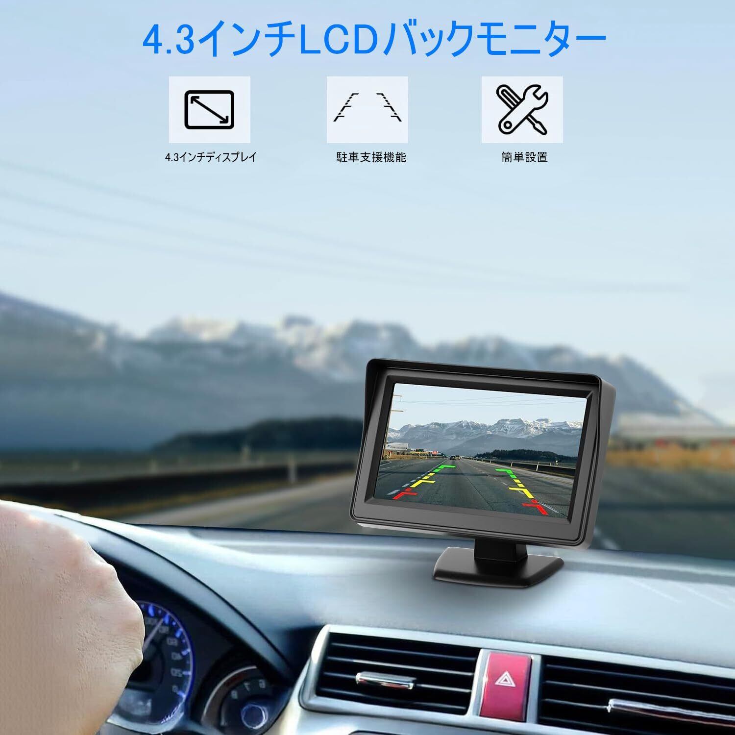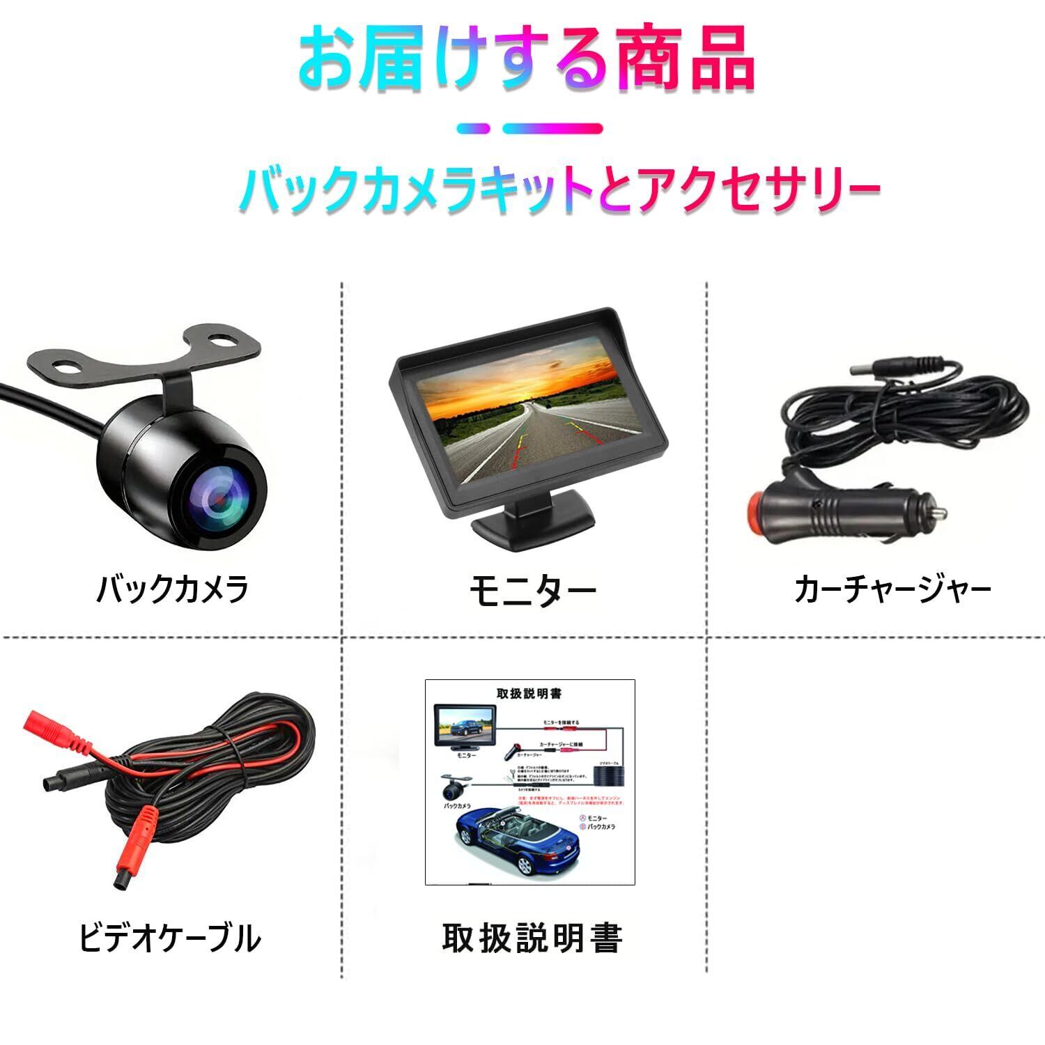 バックカメラモニターセット 4.3インチLCDバックモニター 正像・鏡像切り替え機能付き バックカメラ 車 IP67防水 140°超広角 補助ケーブル付き 10m延長ケーブル付属 12V車対応 取り付け簡単