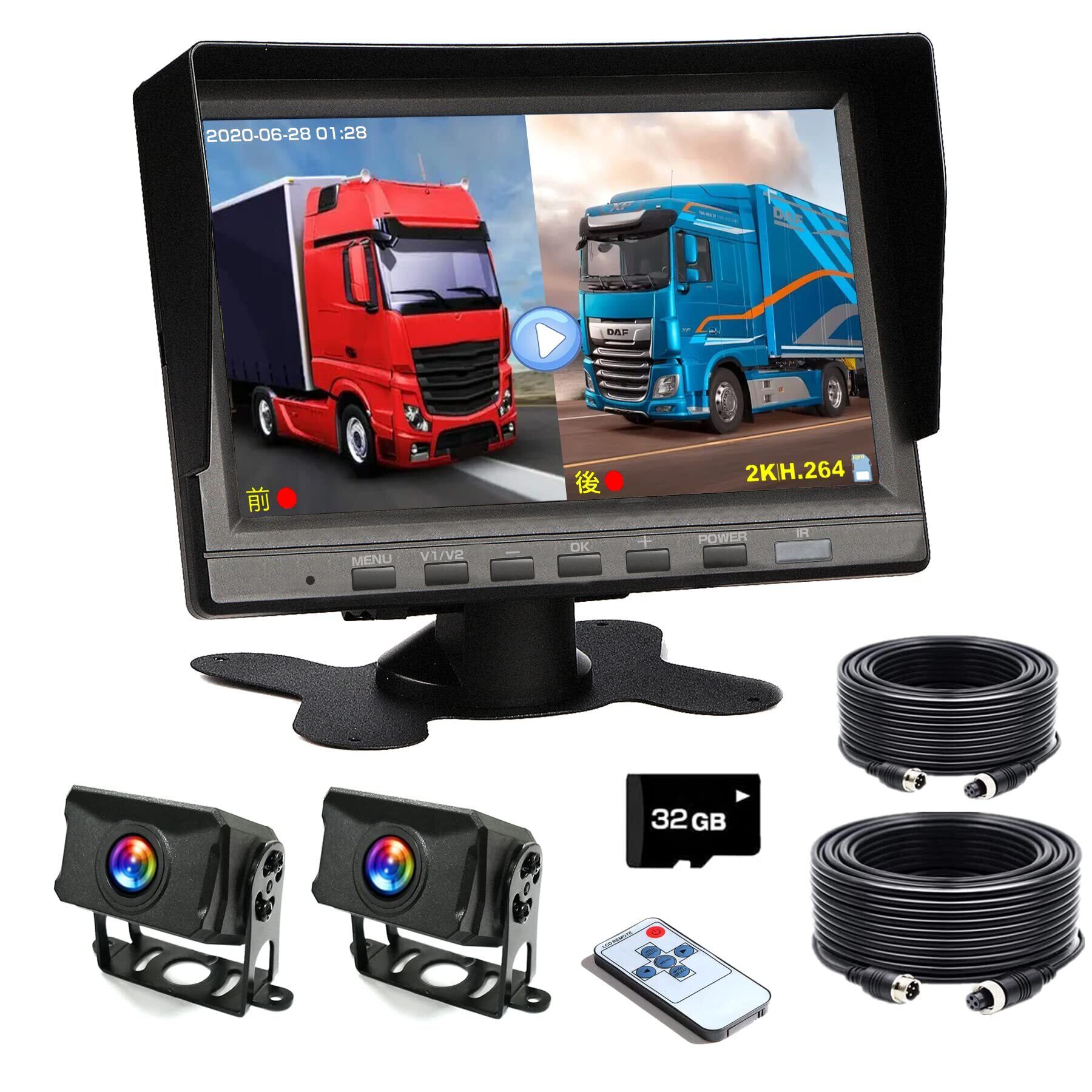 バックカメラモニターセット 7インチバックモニター 7インチモニター バック連動 駐車モニター 液晶オンダッシュモニター 2系統の映像入力 ドライブレコーダー 前後カメラ 32GBカード付属 12V/36V 対応、RV、トレーラー、バス、トラック、車に適しています 液晶ディスプレイ