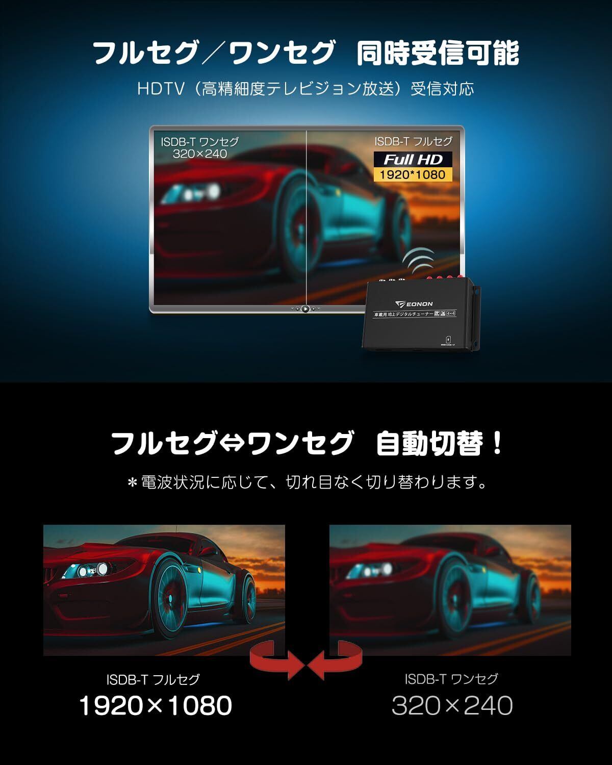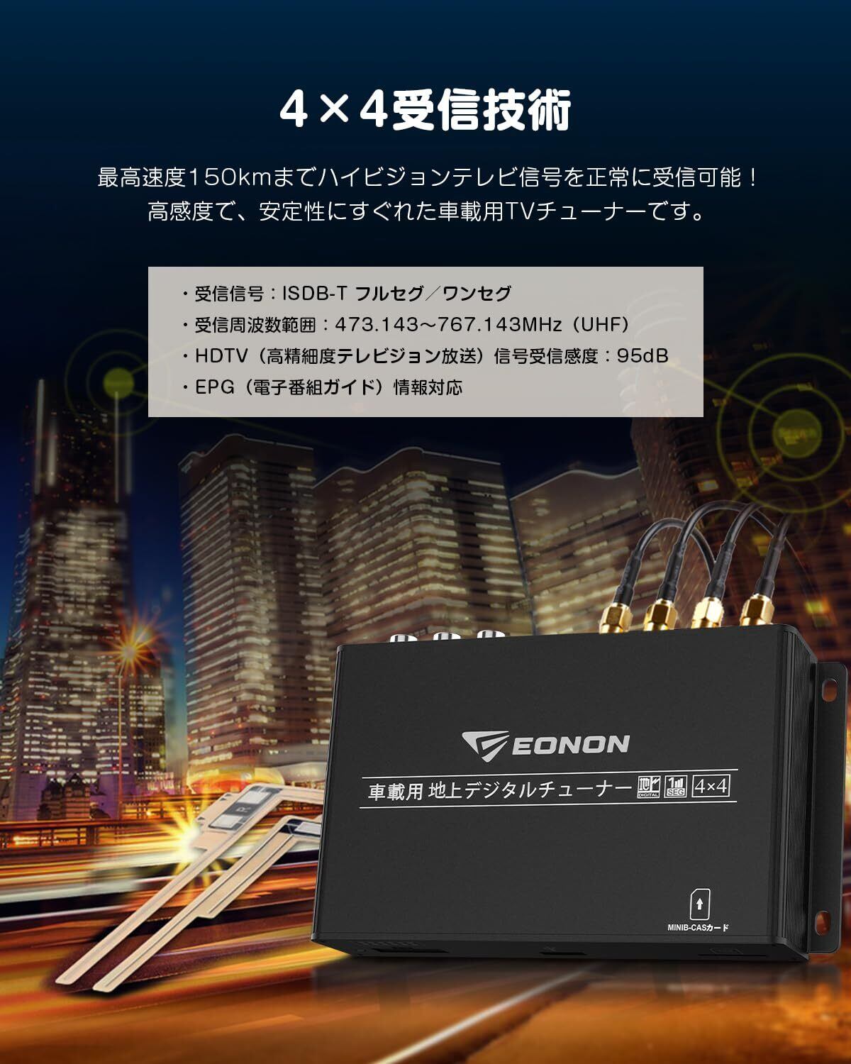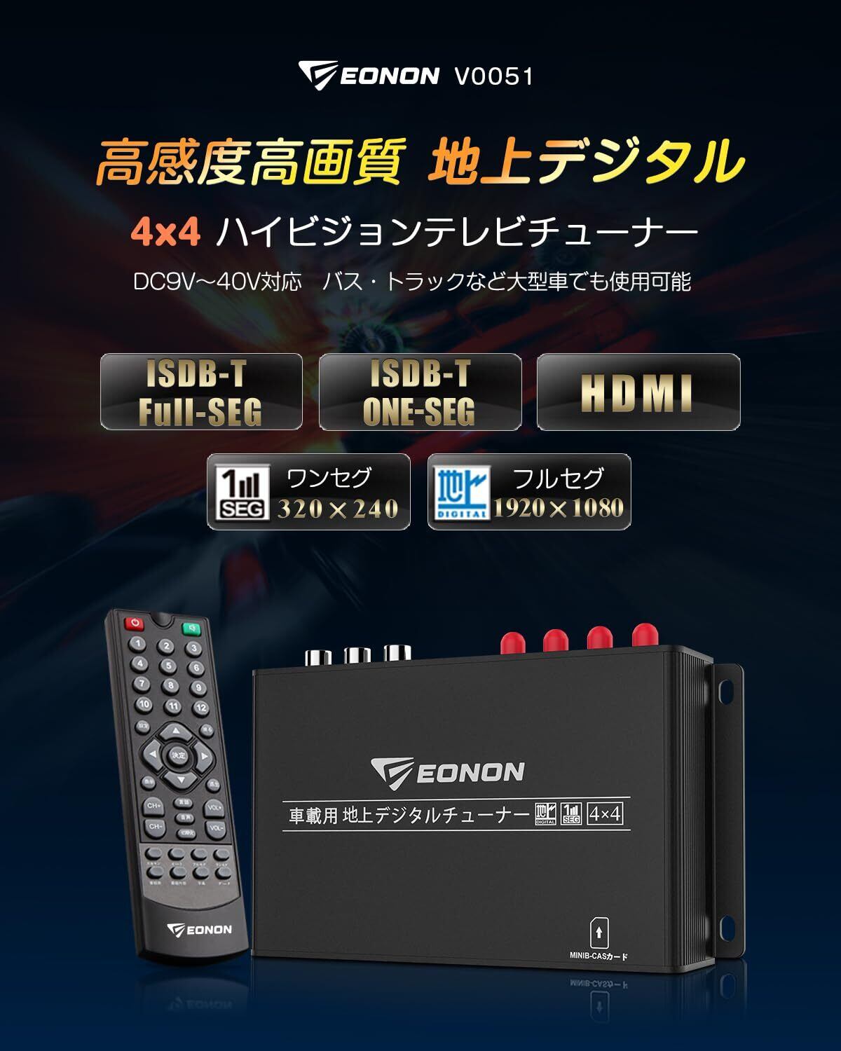 EONON 地上デジチューナー フルセグチューナー ハイビジョンテレビチューナー HDMI対応 車載用 地デジタル DC 9V~40V対応 フルセグ/ワンセグ 自動切替 同時受信可能 電源記憶 高性能4×4 高感度 高精細度 地デジ (V0051)