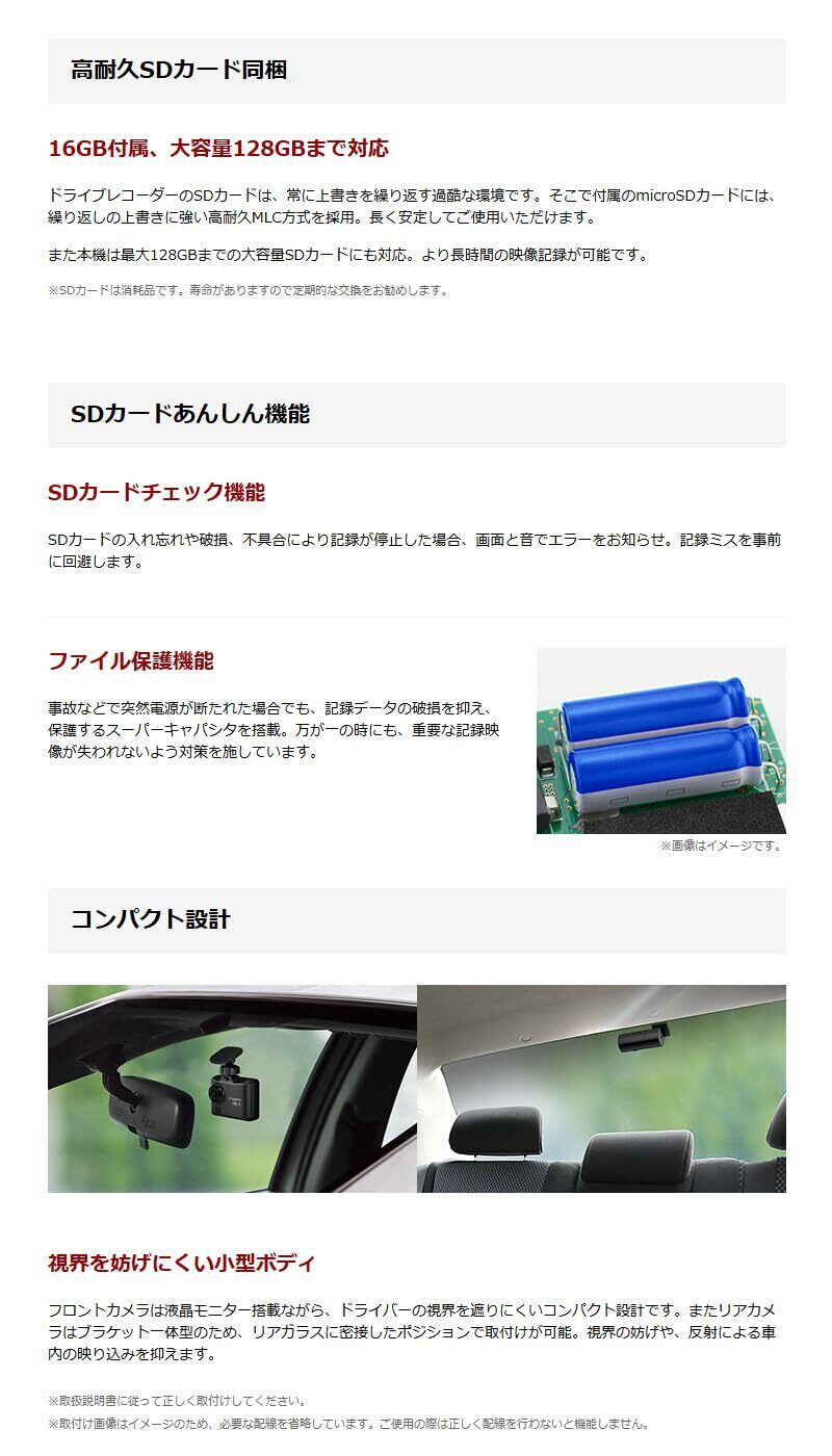 ユピテル 前後2カメラ ドライブレコーダー DRY-TW6000d 電源直結コード付属 HD&Gセンサー&GPS&HDR搭載