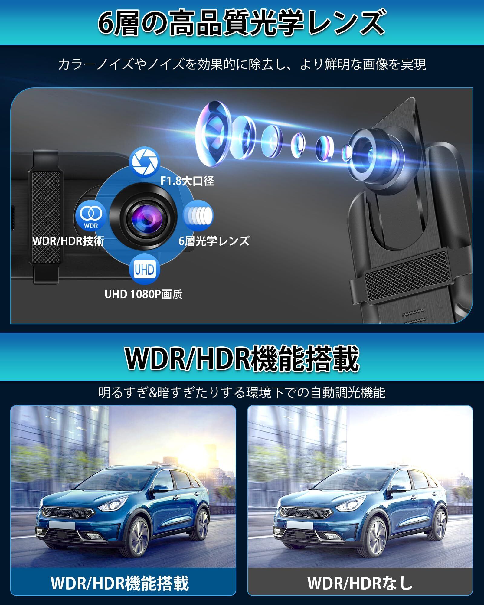 【高度な画像処理技術】このドライブレコーダー前後カメラは最新画像最適化処理技術を採用し、WDR/HDR画像補正機能を搭載し、逆光、ハイライトオーバーフロー、シャドウオーバーフローなどの劣悪な照明条件に対応でき、より本物に近い色再現を実現します。6層の高品質光学レンズは、効果的に迷光波をフィルタリングし、カラーノイズを低減することができます。暗い夜や明るい環境でも、ナンバープレートはもちろん、車の後ろにいるドライバーの表情を捉えることができます。