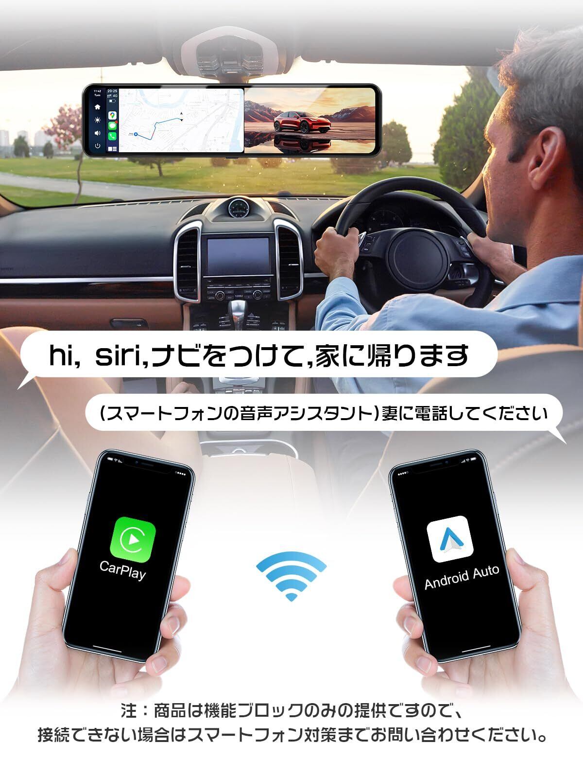 ご注意ください: 「AQUOSは対応していません」「映像フォーマット」で「PAL」に切り替えてください。「NTSC」リアカメラの画面が乱れす。 【carplay AndroidAuto 投画機能】カーナビ地図更新の遅さや精度の悪さから、運転中にスマートフォンのナビを利用することが多くなっていますが、この問題を解決するために、カープレイとAndroid Autoの機能モジュールをデジタルミラーに移植し、投影機能により、スマートフォンのアプリの機能がデジタルミラードラのメインディスプレイに表示されます。ドライブレコーダーの表示が便利になるのはなぜですか? 調査によると、運転視野の90%が真前であり、カーナビや携帯電話ホルダーの位置は下方視界にあるためです。視界の中心となるミラーをより適切に 走行中は刻々と変化する道路状況のため、安全運転を第一に考えて商品を設計しています。