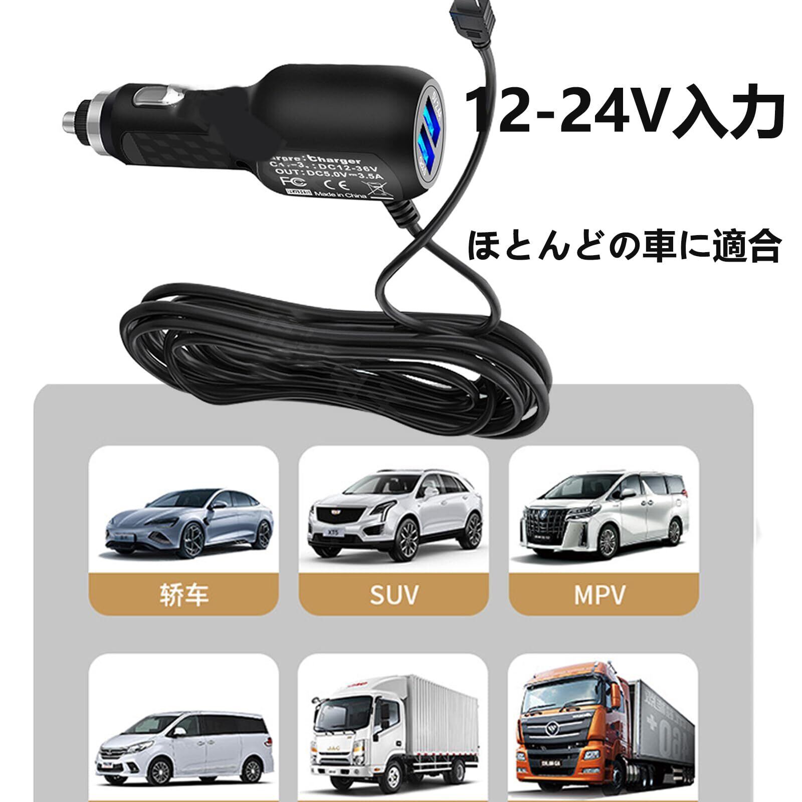 シガーソケット シガー電源ケーブル ドライブレコーダー用電源ケーブル シガーソケット miniUSB 二つのUSBポート2.5A+3.1A 12V/24V /GPS/PC/携帯電話/DVD録音機などに