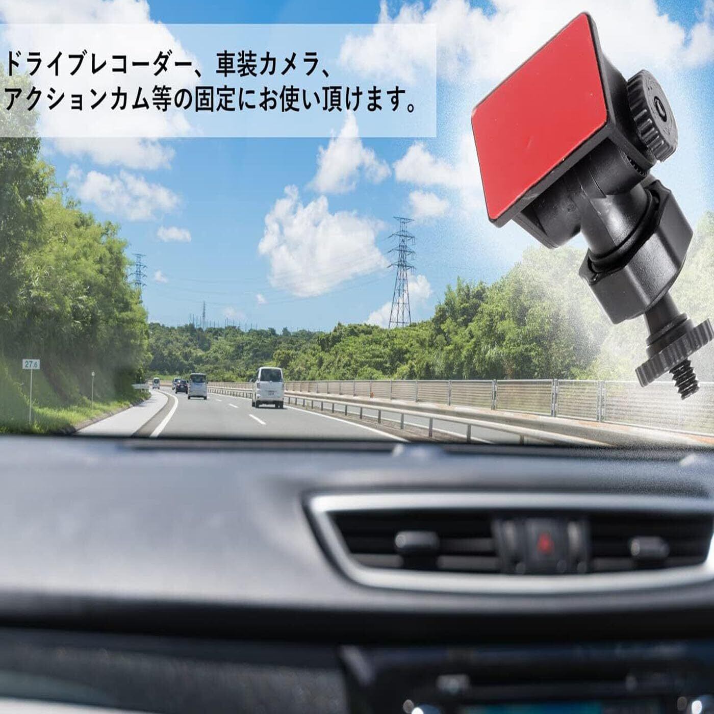 4.高い汎用性:6mm ネジ用マウントを装備したドライブレコーダーに対応する接着固定型の汎用ブラケットマウンタです。強力な接着力により確実に固定され、多くの機種に適合します。