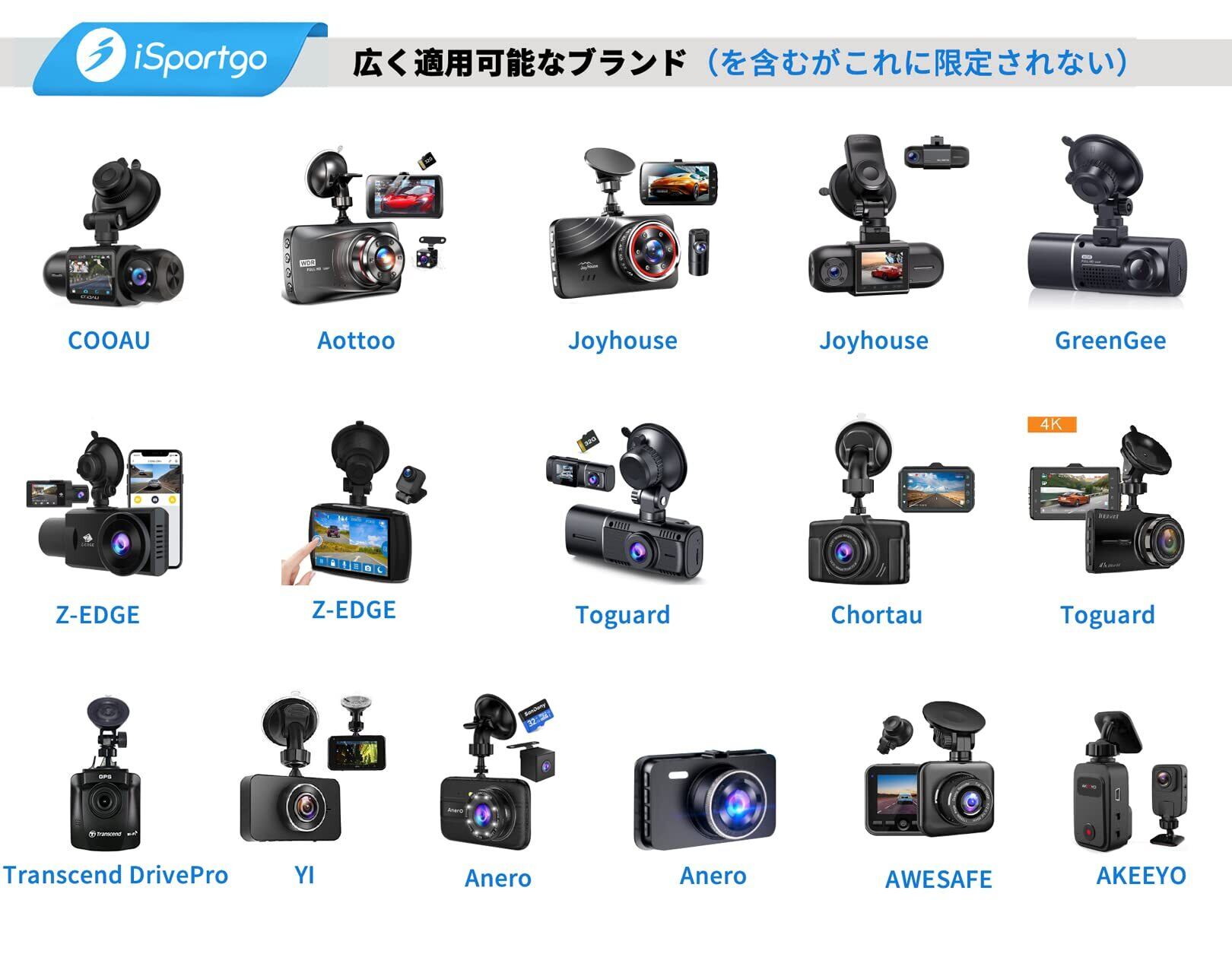 S306には6種類のコネクタが付属しています,REXING、Z-Edge、Old Shark、YI、KDLINKS、Falcon Zero、Transcend、Crosstour、VANTRUE、Black Box、GoPro Heroなど、ほとんどの人気ブランドのダッシュカムに適合します