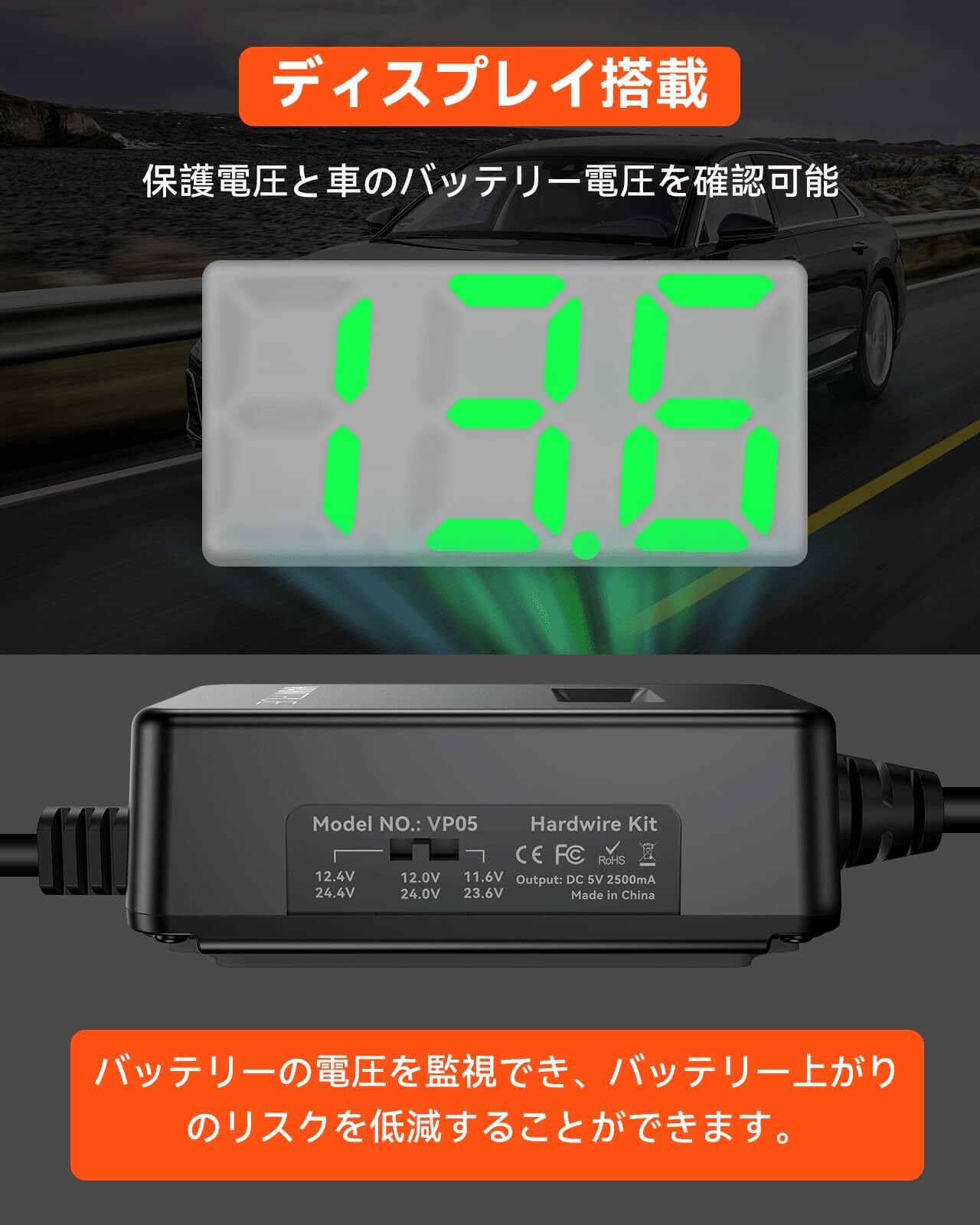 VANTRUE VP05 直結電源ケーブル ディスプレイ搭載 電圧確認可能 低電圧保護 24時間駐車監視 VANTRUE N5S/N4Pro S/S1 Pro Max/N4S/N5/N4 Pro/N2X/S1 Pro/N4/E2/E360/E360 ACE/E1/E1Lite/ドライブレコーダー