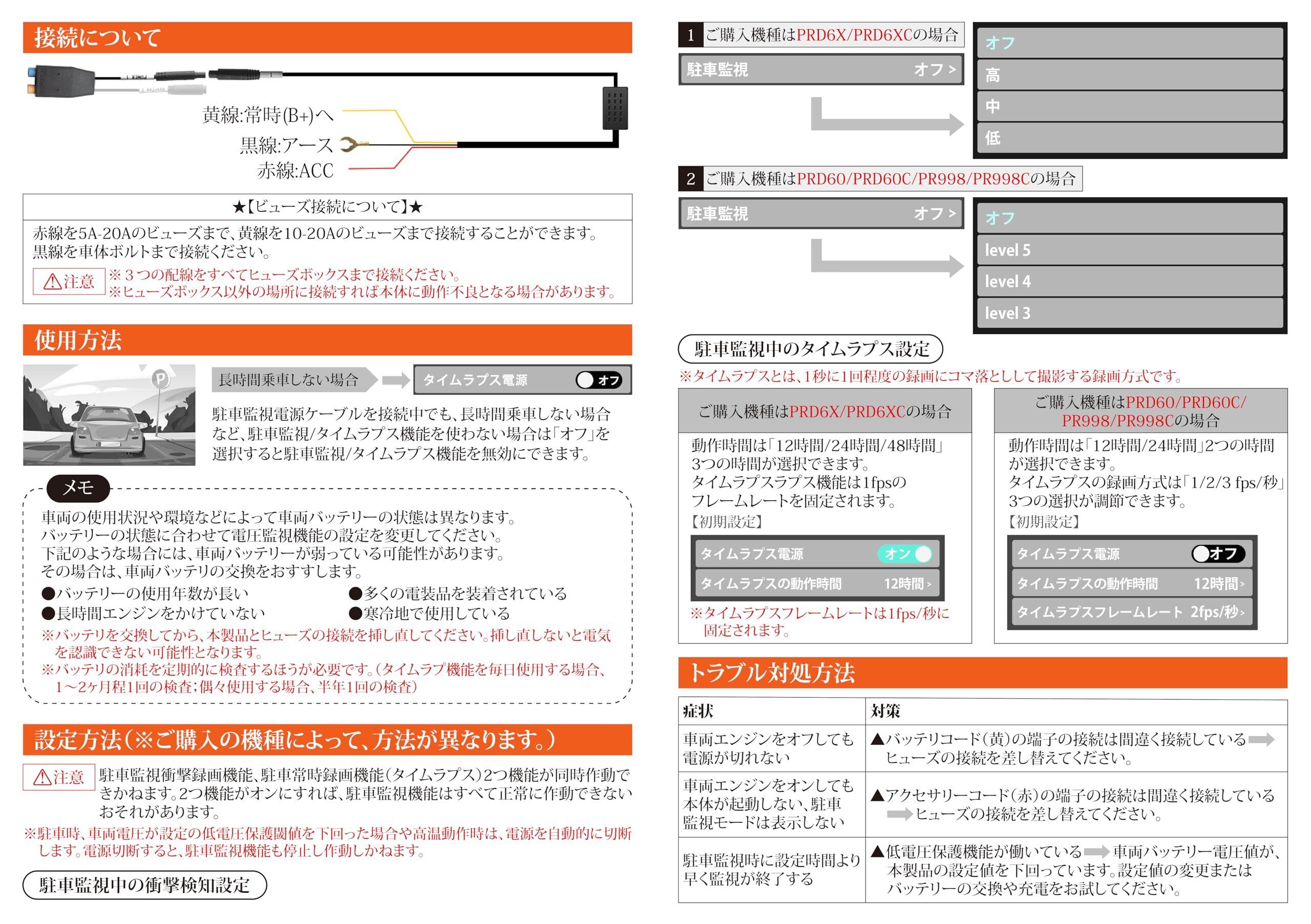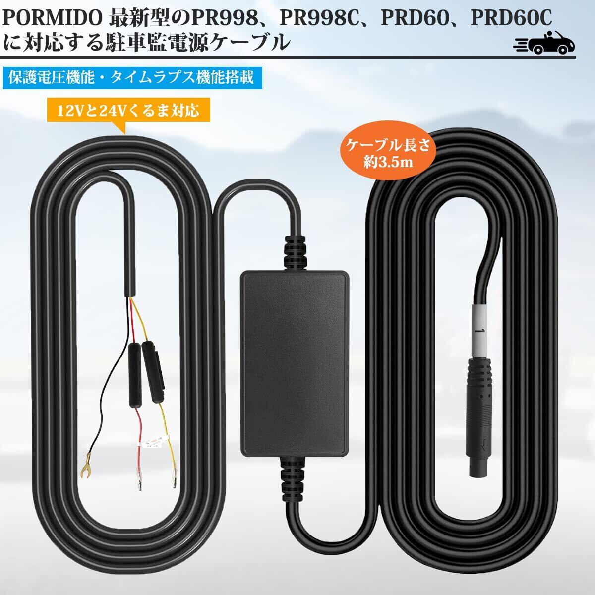 PORMIDOAUTO TYPEC1本線のPR998 PR998C PRD60 PRD60C PRD6XC PRD6TC 専用監視用電源ケーブル 12V/24V車に適応 【型番:PR08X】