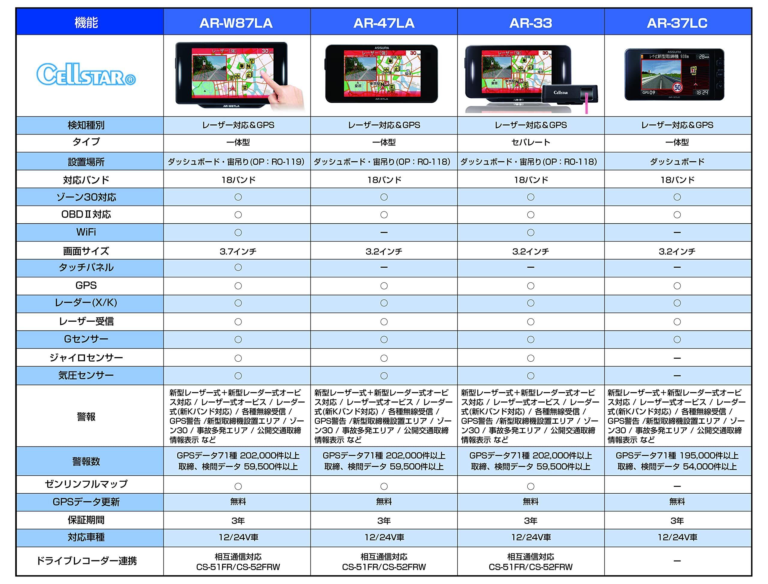 セルスター セーフティディテクター レーザー光受信対応&GPS搭載 AR-W87LA 一体型 18バンド トリプルセンサー ゾーン30対応 OBDII対応 3.7インチ タッチパネル GPSデータ更新無料 WiFi機能 ドライブレコーダーと相互通信 フレデリックスレンズ 日本製 3年 CELLSTAR 黒