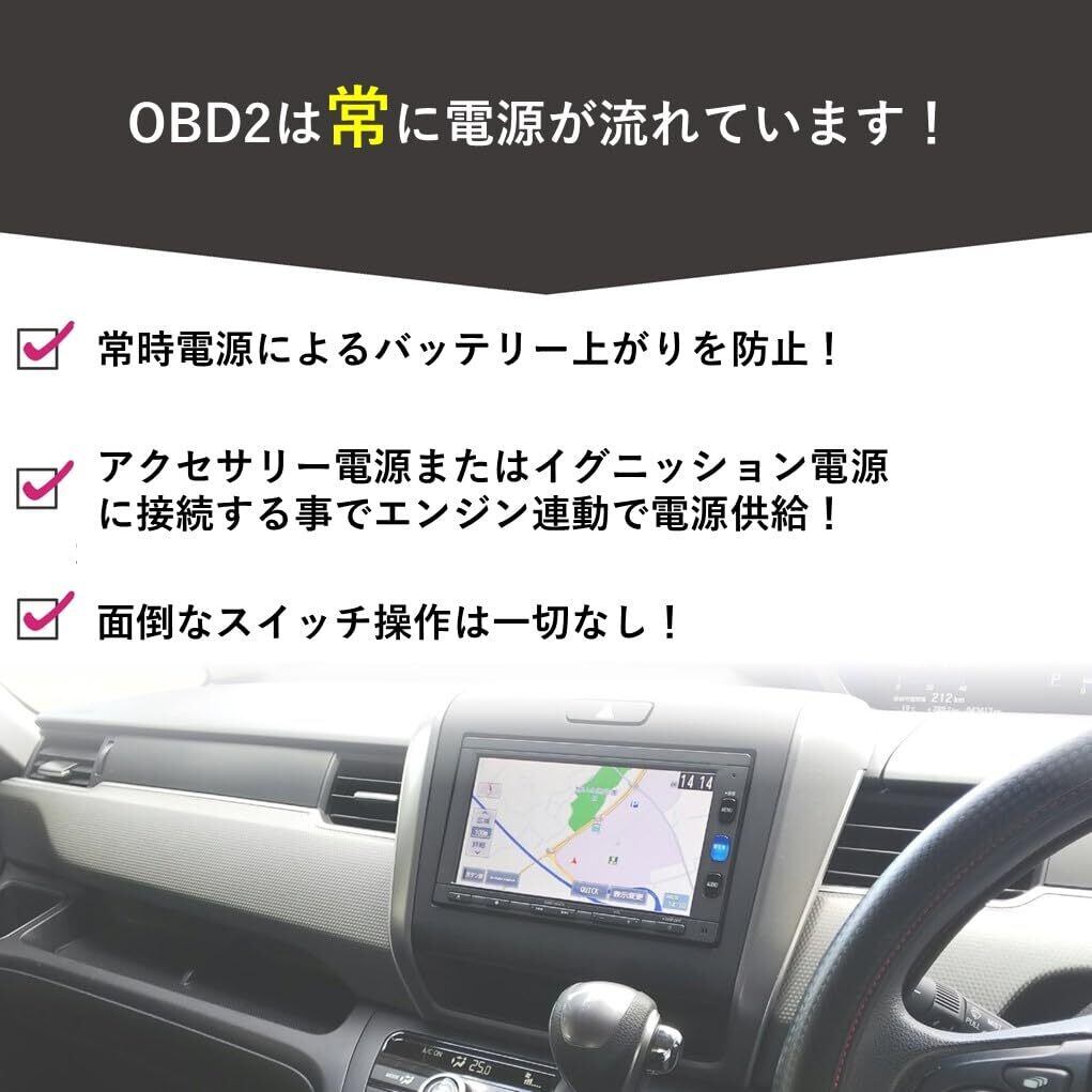OBD2 延長ケーブル ACC電源 電源 アクセサリ バッテリー上がり対策品 暗電流対策 レーダー探知機対策