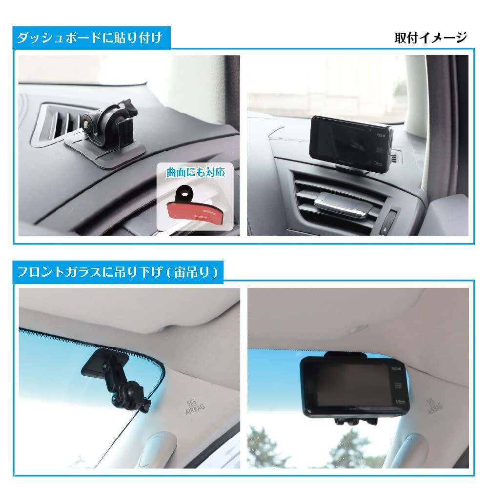 両面テープを使用して ダッシュボードに取付け(曲面にも対応)・両面テープを使用してフロントガラスに吊り下げ(宙釣り)の2種類の取付が可能・ボールジョイントを採用し角度調整も可能・ベースはコンパクトなサイズで取付場所を選びません。