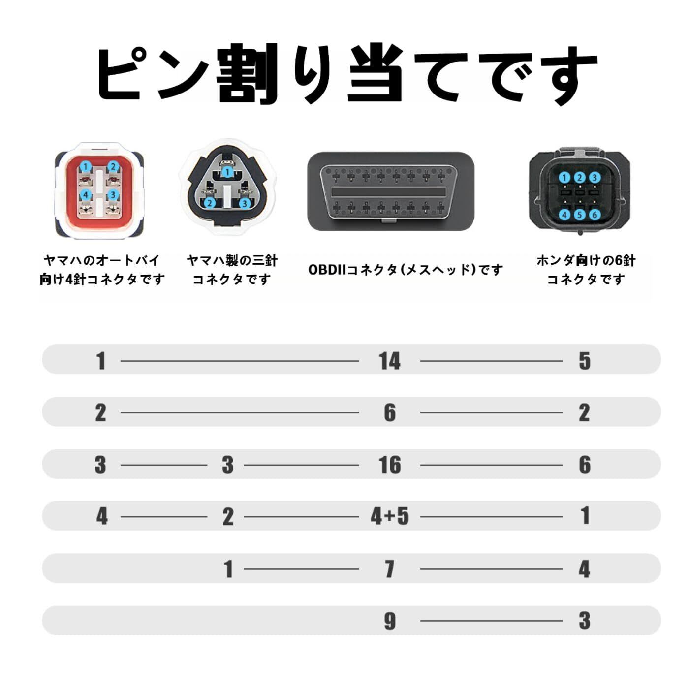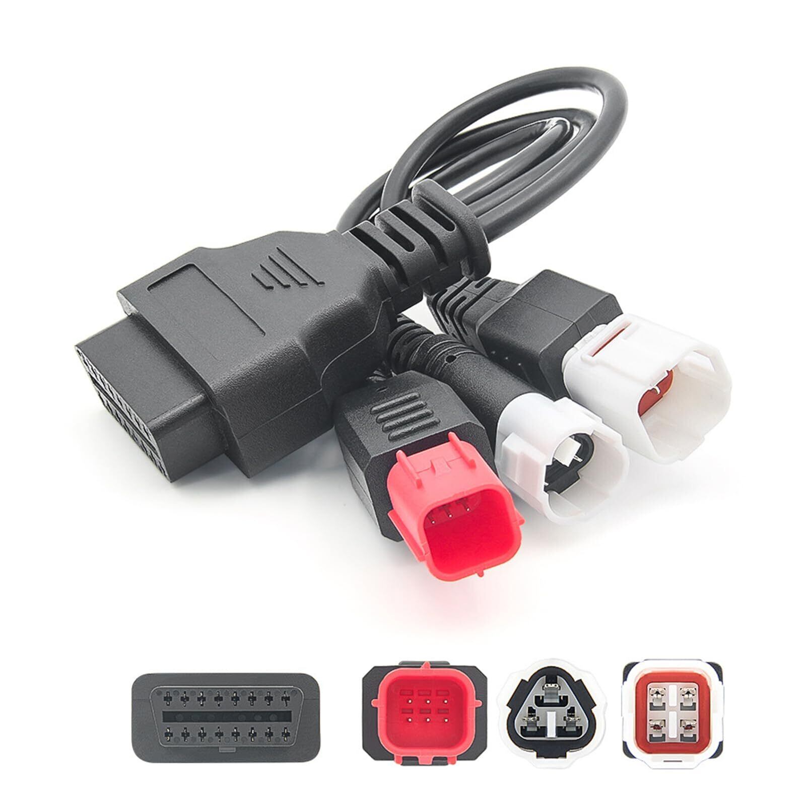 3ピン 4ピン 6ピン 診断コネクターケーブル OBD2 アダプター スキャナー オートバイ故障診断アダプター3in1ーアダプタ オートバイ ヤマハ ホンダ用 高耐久 簡単接続