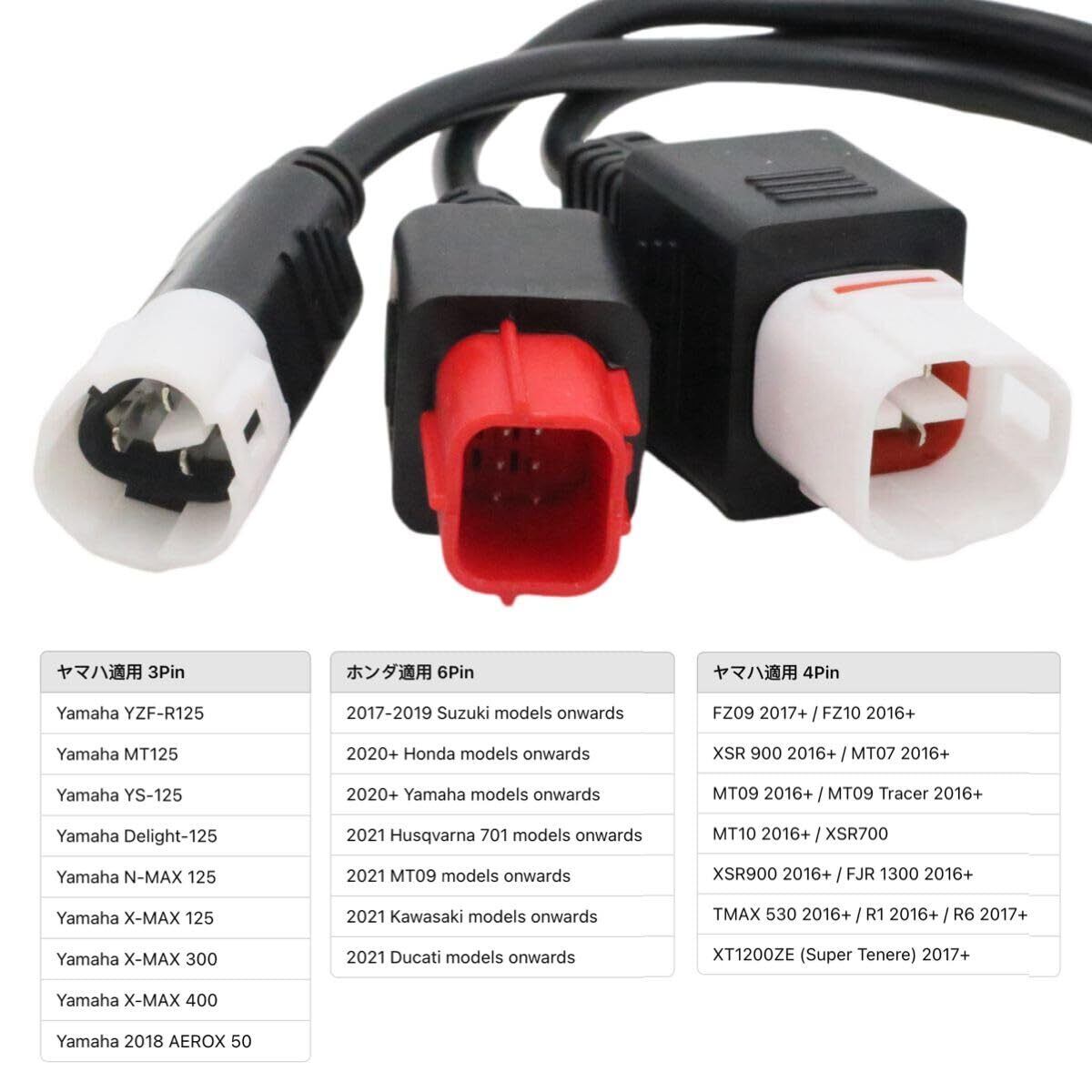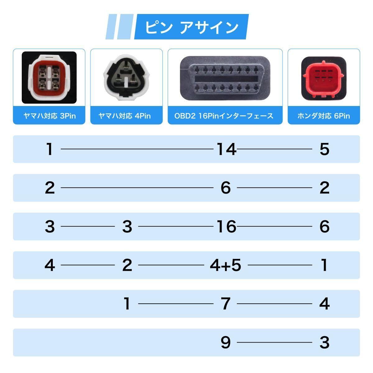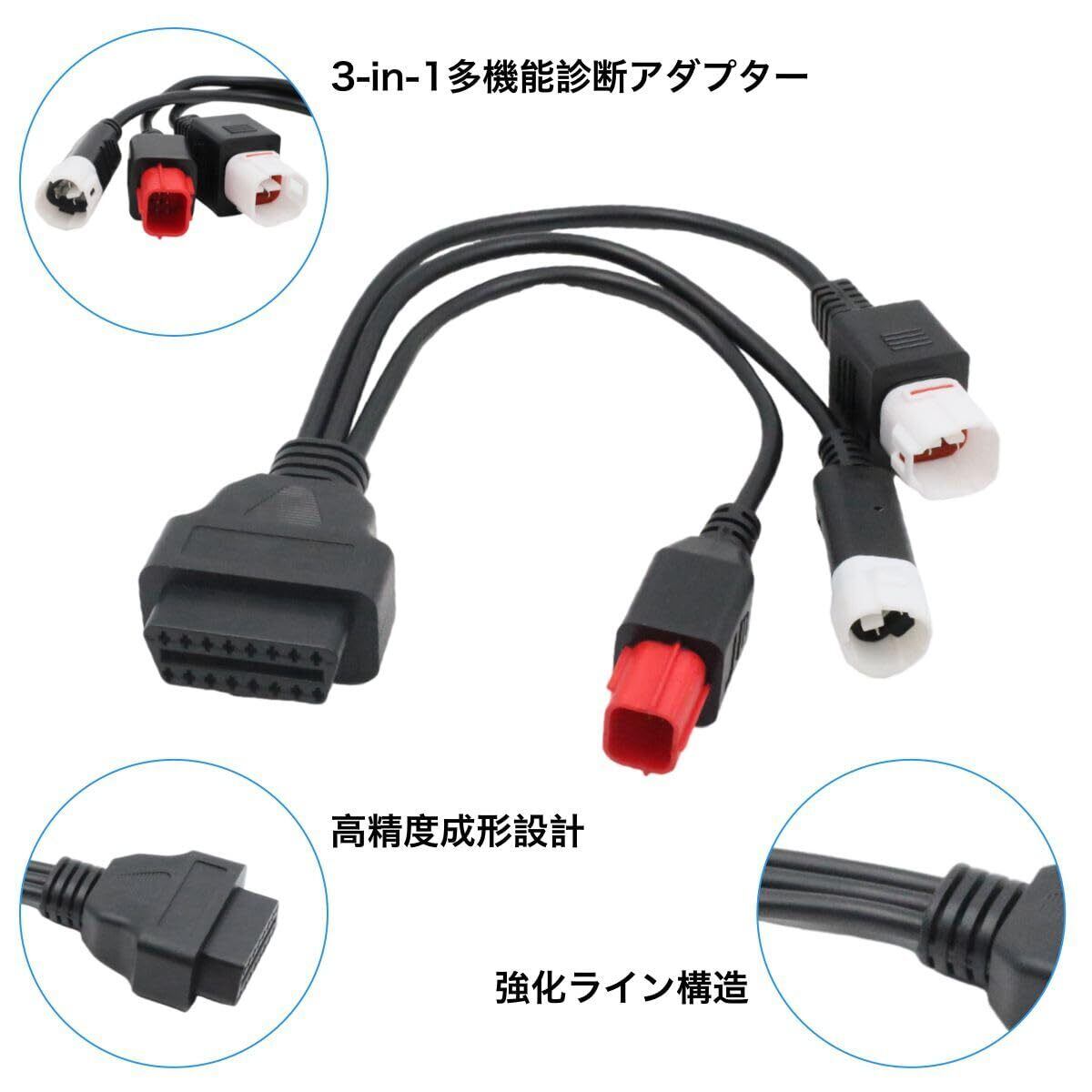 3ピン 4ピン 6ピン 診断コネクターケーブル OBD2 アダプター スキャナー 3in1 ヤマハ ホンダ用 高耐久 簡単接続