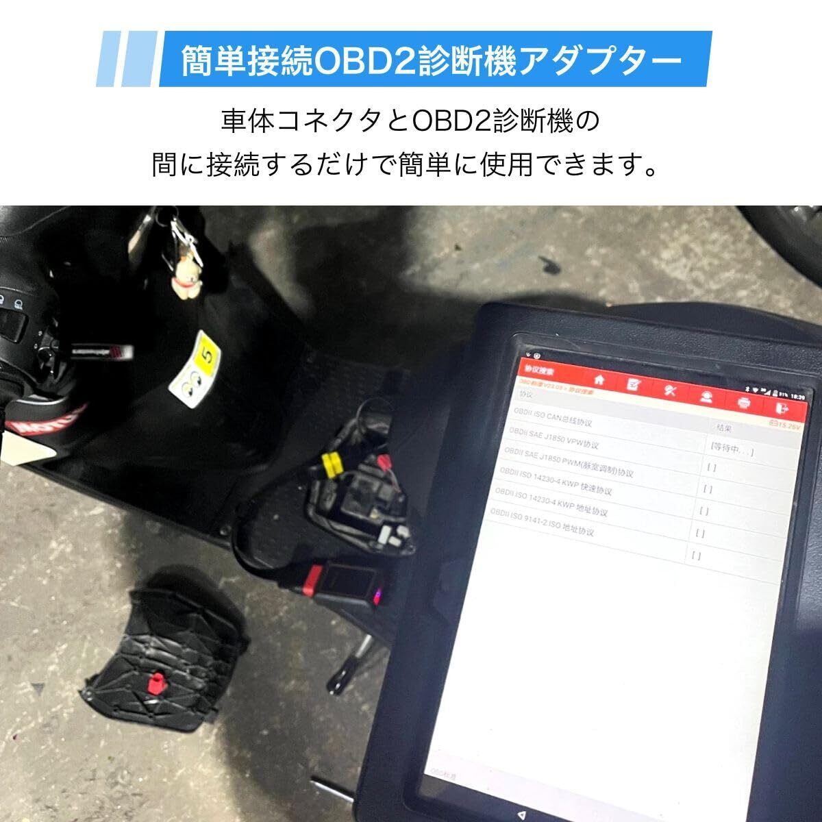 [簡単取付] 工具不要で差し込むだけのシンプル設計。診断機との接続を素早く行え、整備作業の効率を向上