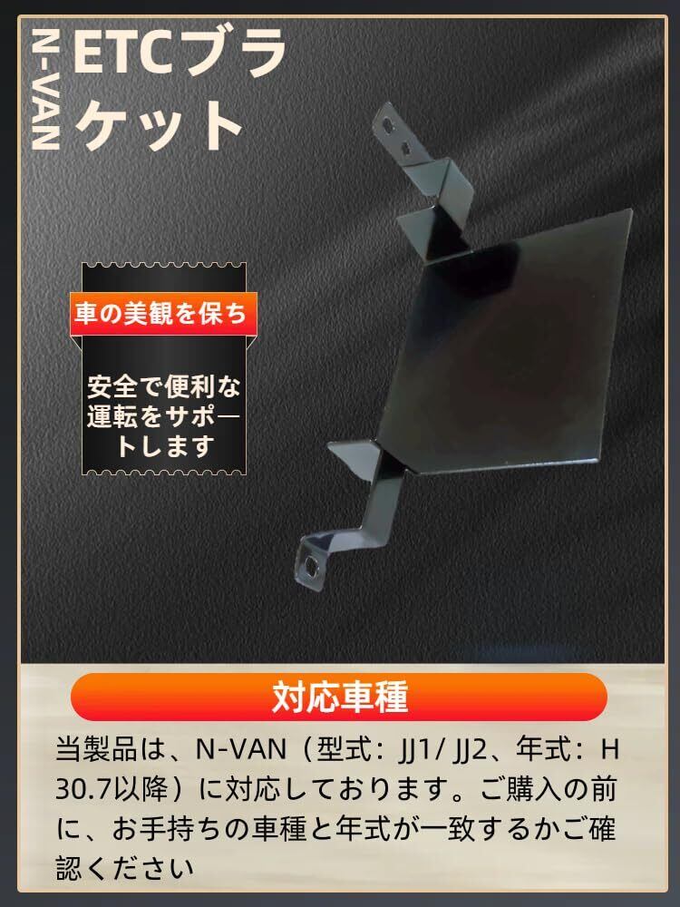 ETCブラケット N-VAN用 ETC対応取り付け基台 型式:JJ1/JJ2、年式:H30.7以降対応、3Mスポンジテープ*1、取り付け用ネジ*2付き 純正ETCと同じ場所に設置可能 精密製造 防錆処理