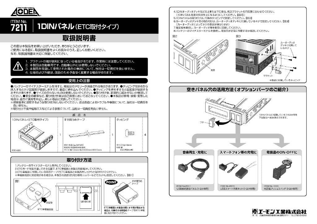 エーモン(amon) 7211 1DINパネル(ETC取付タイプ)