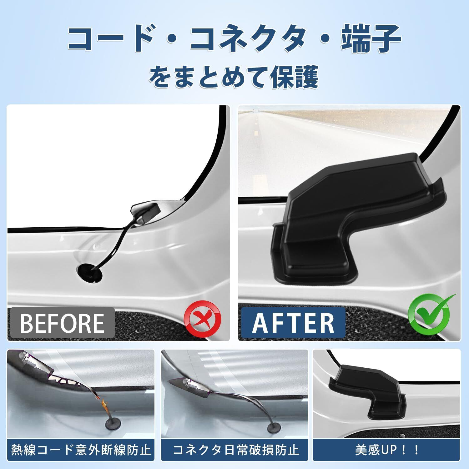 3.「実用性・美感」:装着したら、ご愛車のコード・コネクタ・端子をしっかりと保護できます。日常に起こりやすいコードの断線やコネクターの破損トラブルを未然に防ぎます。実用性の同時に美しさも失わない、滑らかな表面は先進的でシンプルなデザインはカーギアの装飾にも使え、実用性と美しさを兼ねています。