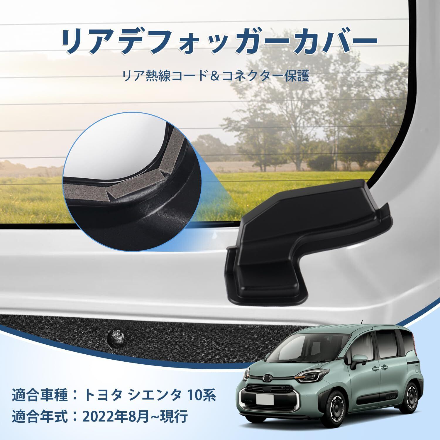AUTO SPEC トヨタ シエンタ 10系 リアデフォッガーカバー SIENTA 2022年8月~ MXPL10G型 リアデフォッガー ケーブル保護 熱線カバー アンテナハーネスプロテクター バックドアアンテナ保護カバー アクセサリー カスタムパーツ カー用品 両面テープ取付 2個セット(トヨタ シエンタ 10系;ブラック)
