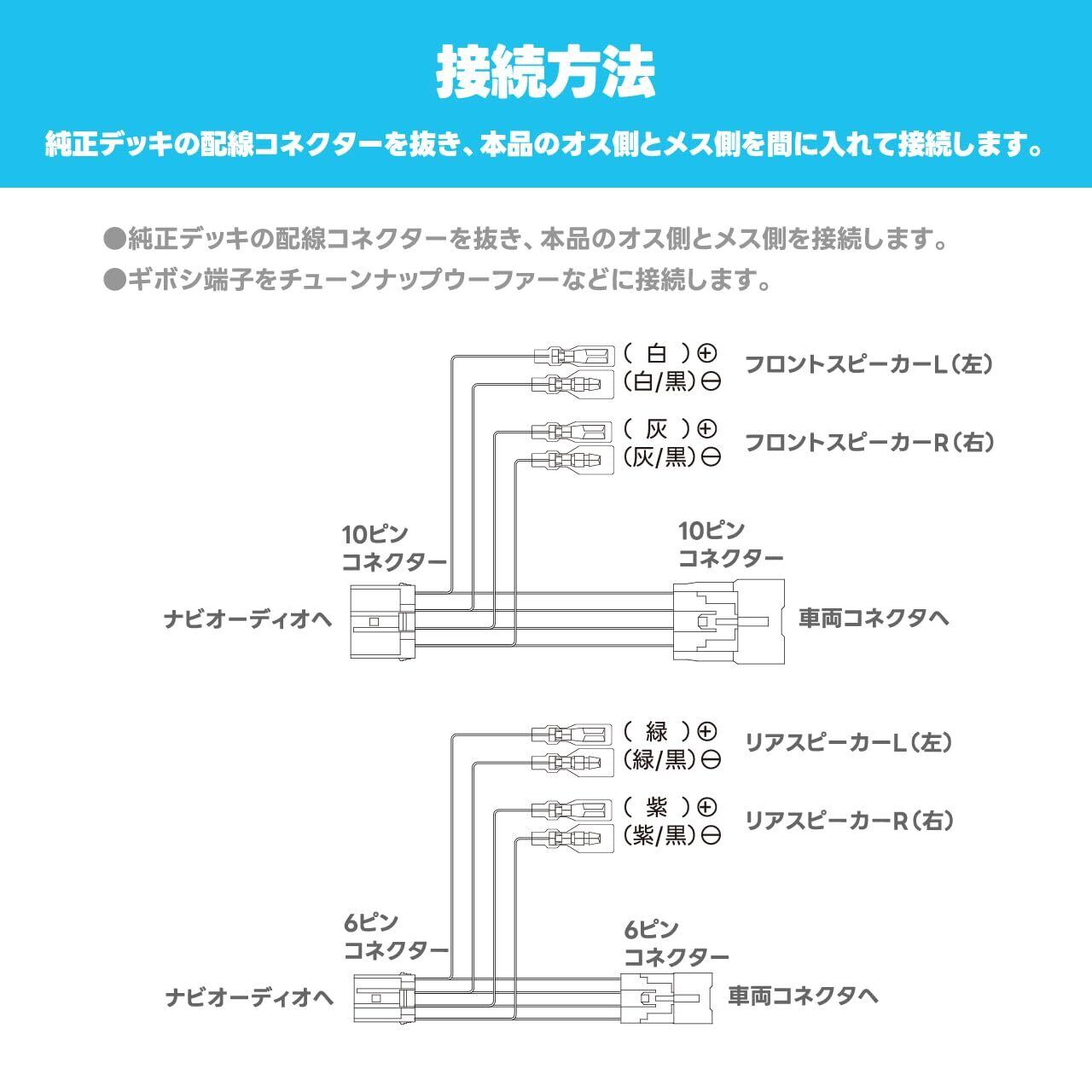 ■トヨタ純正オーディオから又取りでスピーカー出力を取出す場合に使用するケーブル ■チューンナップウーファーやチューンナップトゥイーター、TOP-PANELなどを追加する場合に便利