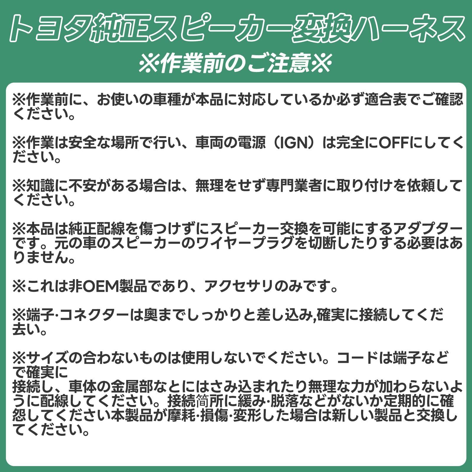 【車スピーカー 変換ケーブル 対応車種】トヨタ車種多数対応。新型シエンタ/ャリス/ャリスクロス/GRャリス(2スビーカー付き車)/GRヤリス(JBL8スビーカ一付き車)/カローラセダン/カローラツーリング/カローラスポーツ等。(詳細は適合表をご確認ください)。