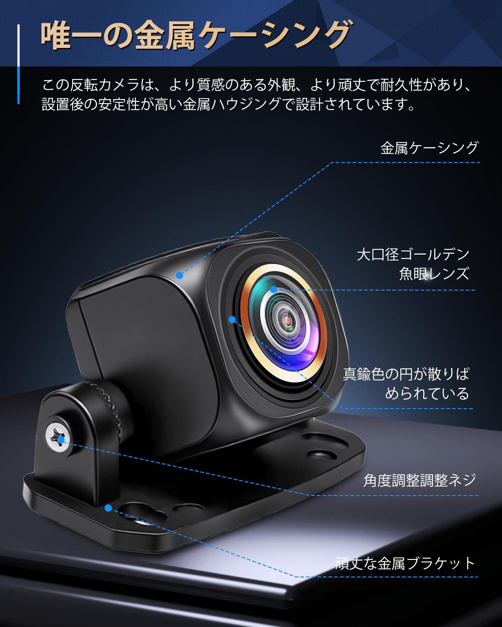 OEMブラケット+全金属筐体+全ステンレスネジ改良---全面アップグレード:❶隠しOEMスタイルリアカメラ。コンパクト設計で車両と一体化。取り付け高さはわずか0mm(通常カメラとの違い)。角度調整機能付き。❷日本沿岸市場向けにフルメタル筐体を強化。高耐久性で高温・低温下でも変形せず長寿命。全ステンレスネジ採用で耐腐食性に優れる。
