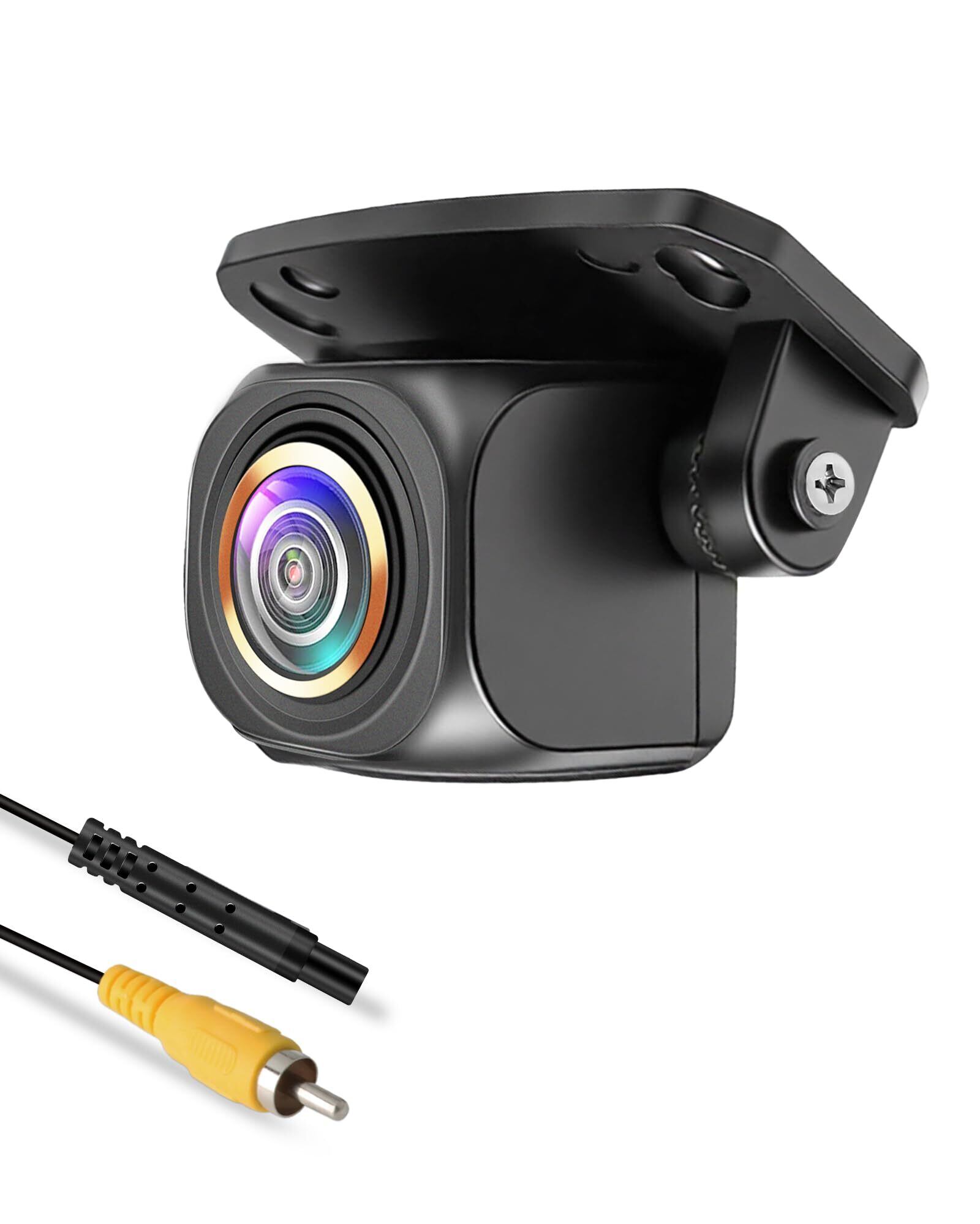 超小型車載カメラと簡単な取り付け---太いRCAコネクターの代わりに細い4ピンコネクターを使用することで、車のリアドアから取り付けることができ、ケーブルループの損傷を最小限に抑えます。改良された4ピンコネクターにより、安定性が増し、インターフェースの耐久性が向上しました。ケーブル一体型設計により、接続プロセスが簡素化され、取り付けが容易になりました。サイズはわずか22 (W) x 22 (H) x 23 (D) mmで、規制違反を心配する必要がないほどコンパクトです。