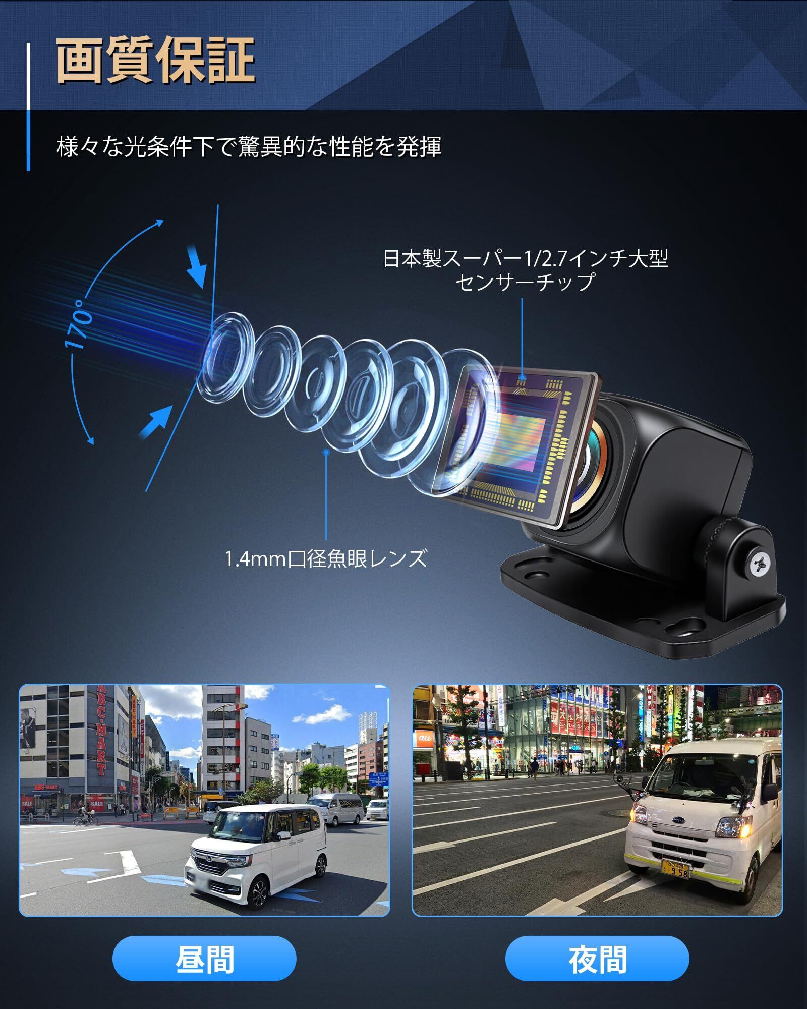 170°超広角---アップグレードされた1.4mm魚眼レンズが170°の超広角視野を提供し、より広範囲をカバー。より多くのディテールを簡単に捉えます。より包括的な保護を実現しながら、リアルな映像を再現。バック時の頼れる相棒です!