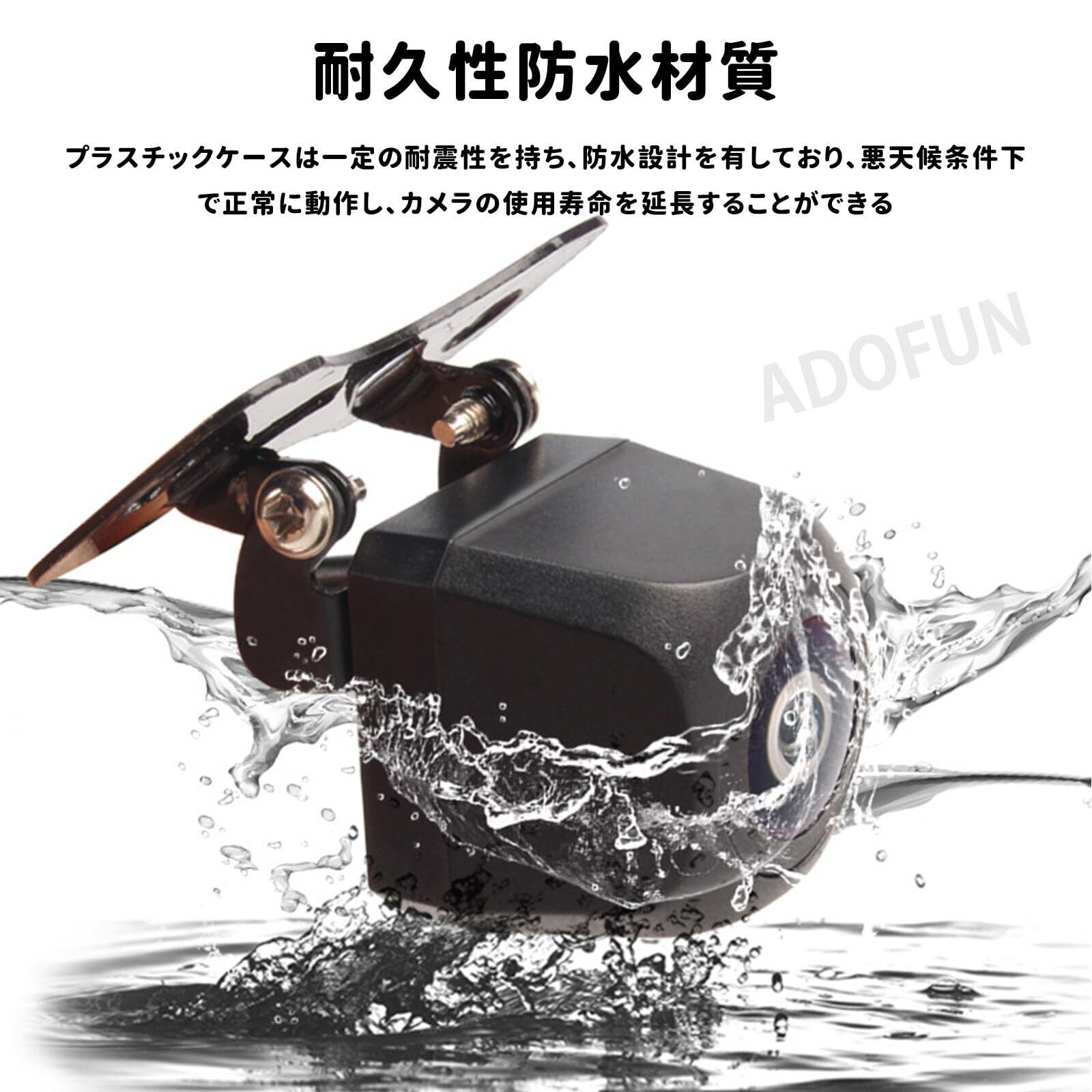 標準レンズ装備と角度調節可能:120°の広角、角度は自然なイメージを提供するために任意に調節することができる、運転時や後退時の不快感や困難を解消。適切な視野を確保し、取り付け後のブラケットによる微調整も簡単だ。