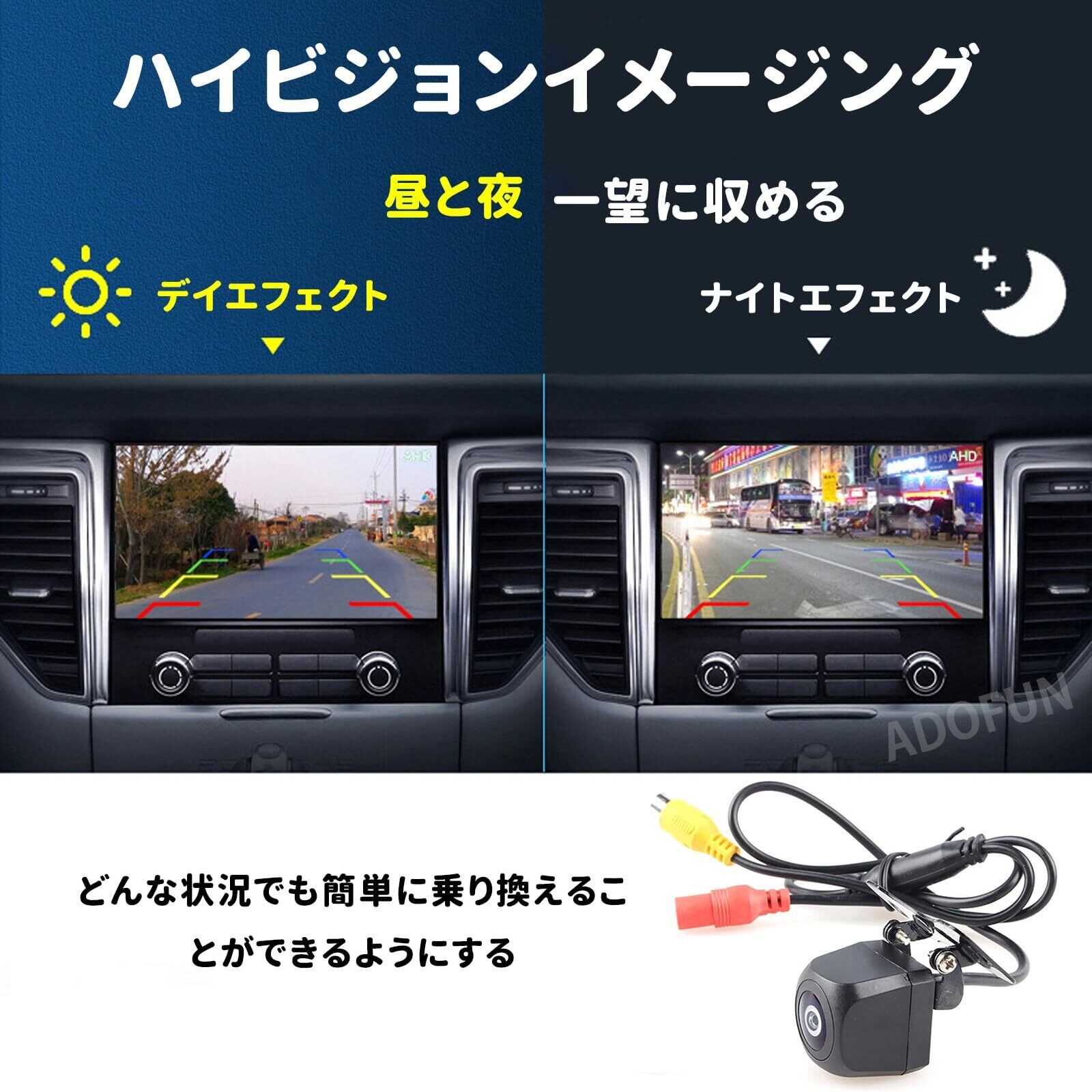 スーパー暗視機能:このバックカメラは、カラーCMOSセンサーを搭載して、AHDナイトビジョンは、720pの高解像度で、クリアで詳細な画像を撮影できる。夜間でも優れた色再現性で安全な後方視界をサポートします。