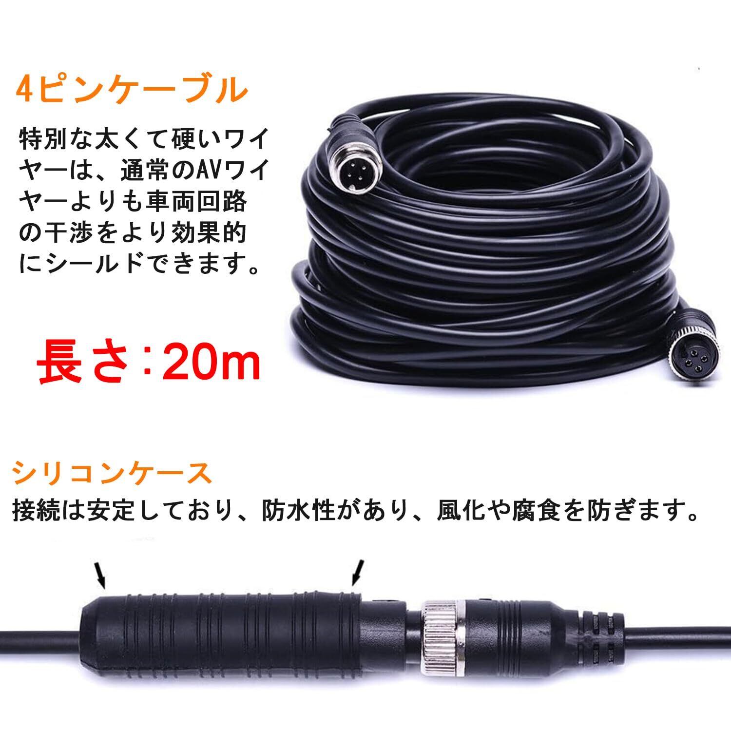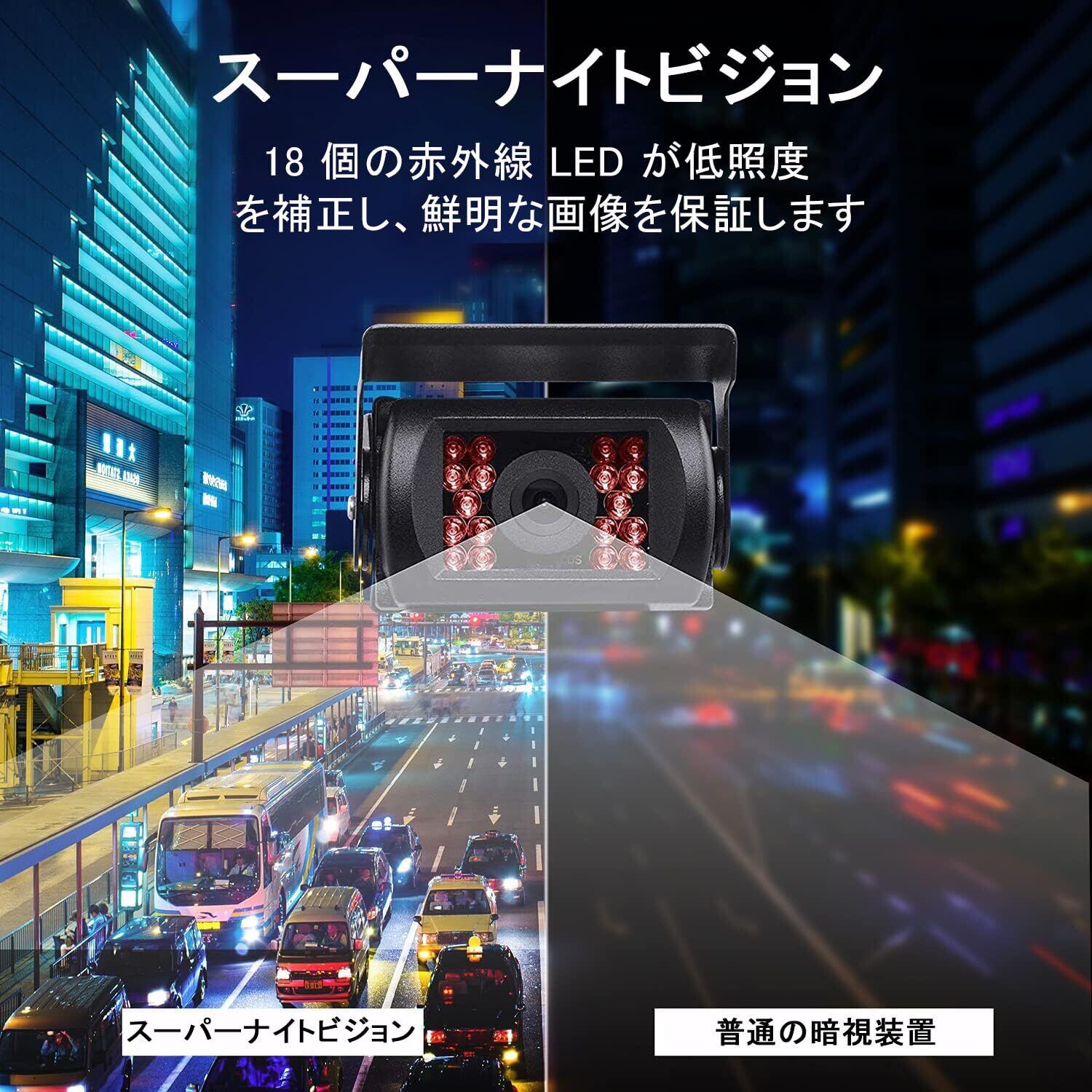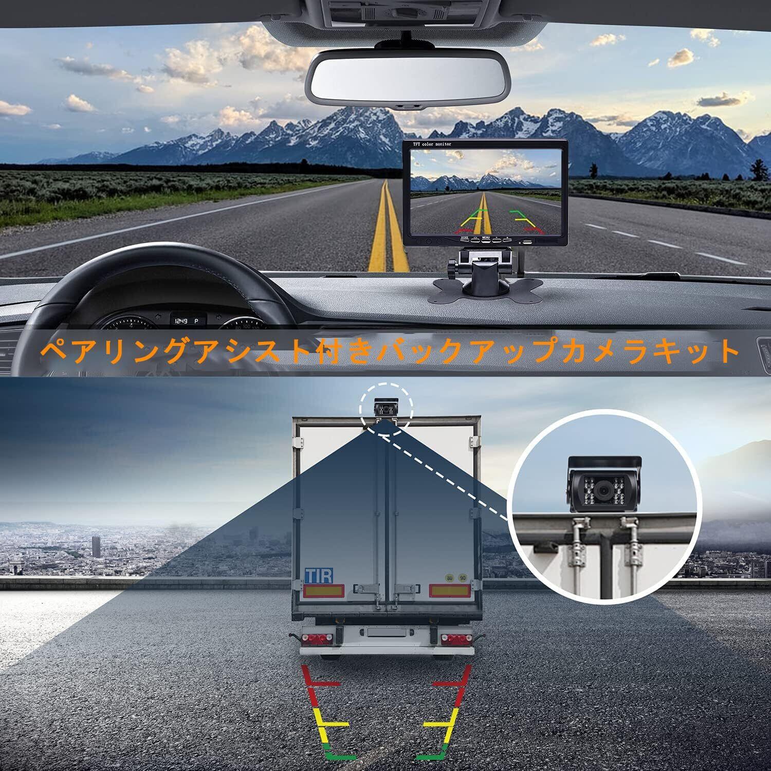 バックカメラモニターセット 7インチLCDモニター バックモニターカメラセット リアカメラ 超暗視機能 ガイドライン表示 IP68防塵防水 24V対応 シガーソケット給電 取り付け簡単 20m延長ケーブル付 日本語取扱説明書 メーカー