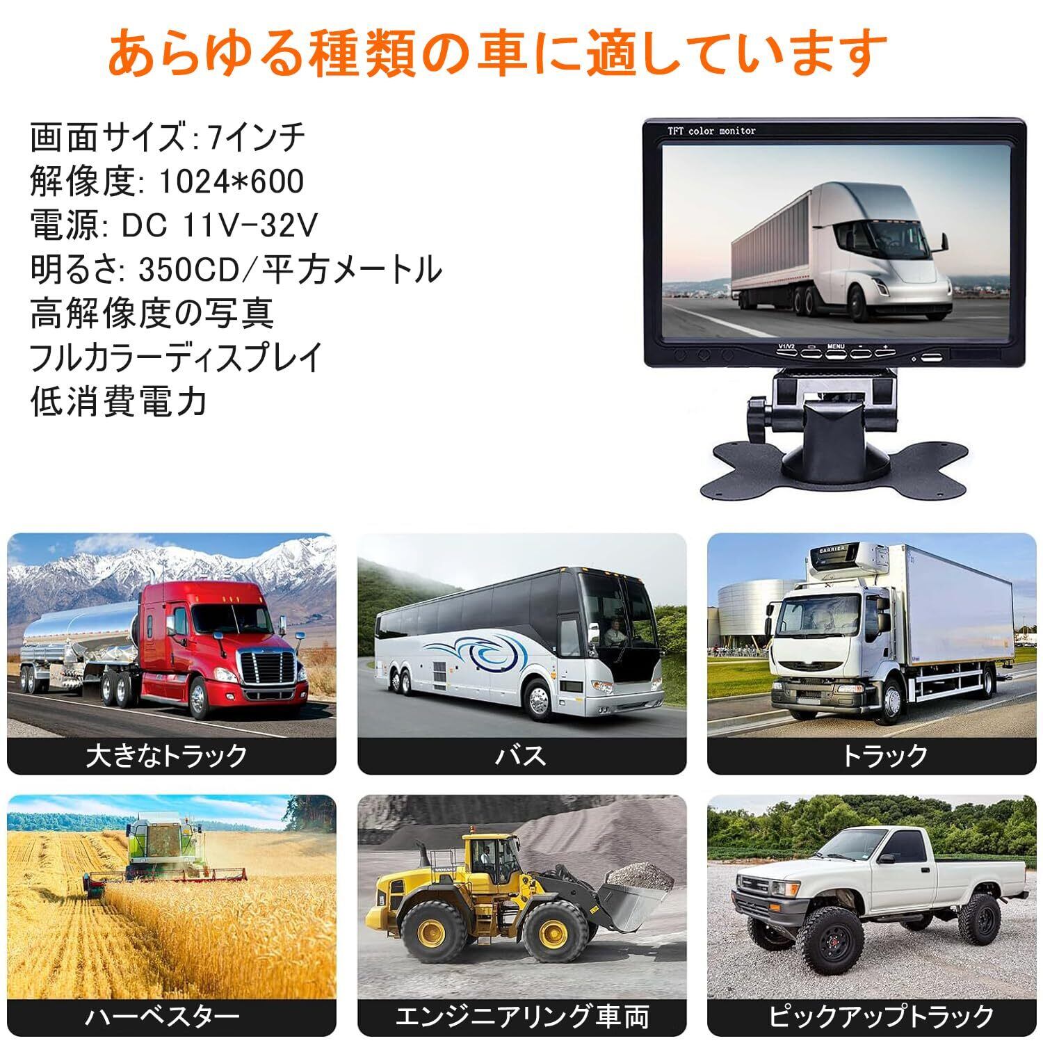 【幅広い適合性】ロング20m配線が付属されているので、12~24V DC電源の電圧範囲で、トラック、バス、RV、トラクター、乗用車などの幅広い大型車両に対応します。