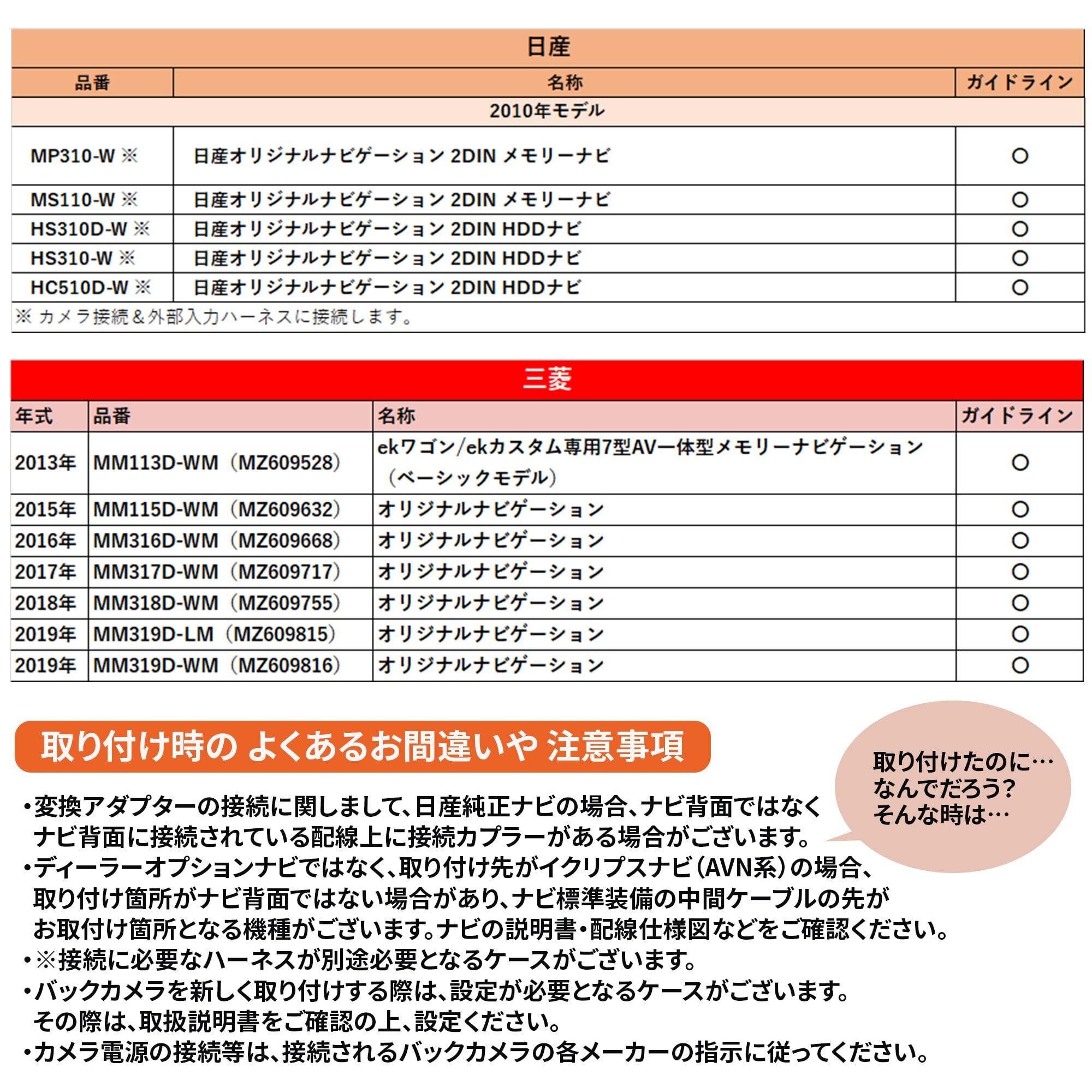 日産 三菱 ディーラーオプションナビに社外バックカメラのVTR(映像)信号の入力を可能にする配線キットです。