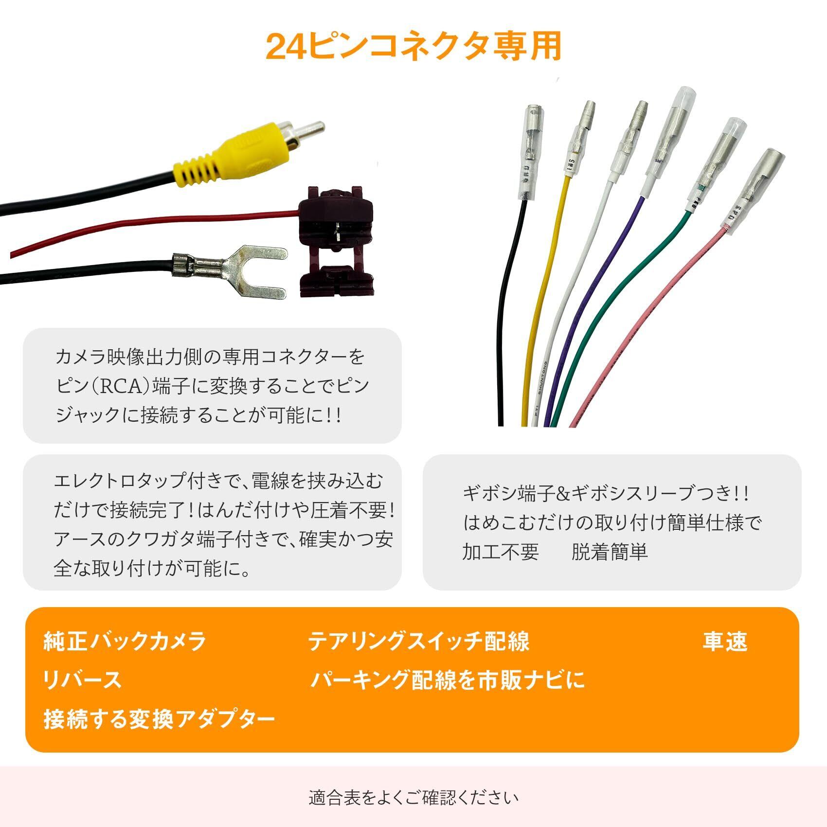 24ピン コネクタ 専用 バックカメラ を、RCA ピン 端子に 変換 して 市販ナビ に 接続 する 変換 アダプター