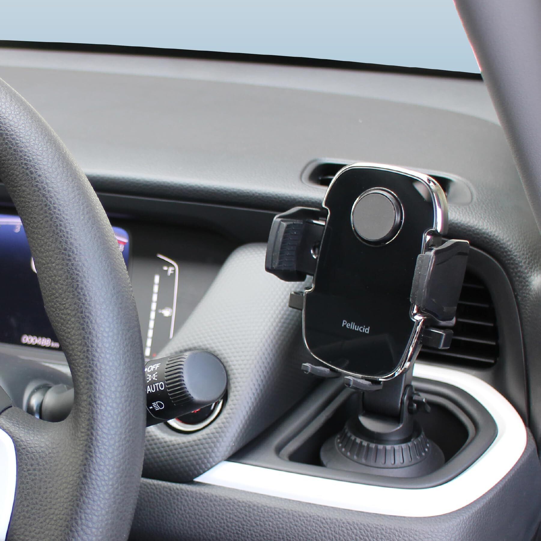 ペルシード(Pellucid) 車載スマホホルダー ドリンクホルダー取付 手帳型ケース 縦横置き対応 片手ワンタッチ開閉 PPH2111