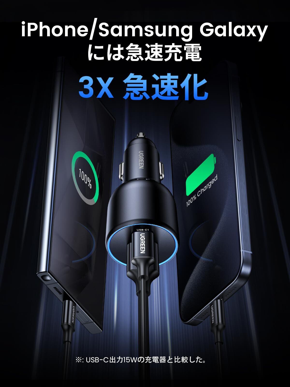 UGREEN 130W シガーソケット usb-c カーチャージャー 3ポートPD3.0/QC4.0/PPS対応 車載充電器 コンパクトサイズ 耐久性 シガーソケット 急速充電器iphone17/13/12, Galaxy S22/S21 Ultra, iPad, MacBook,ラップトップなどに対応