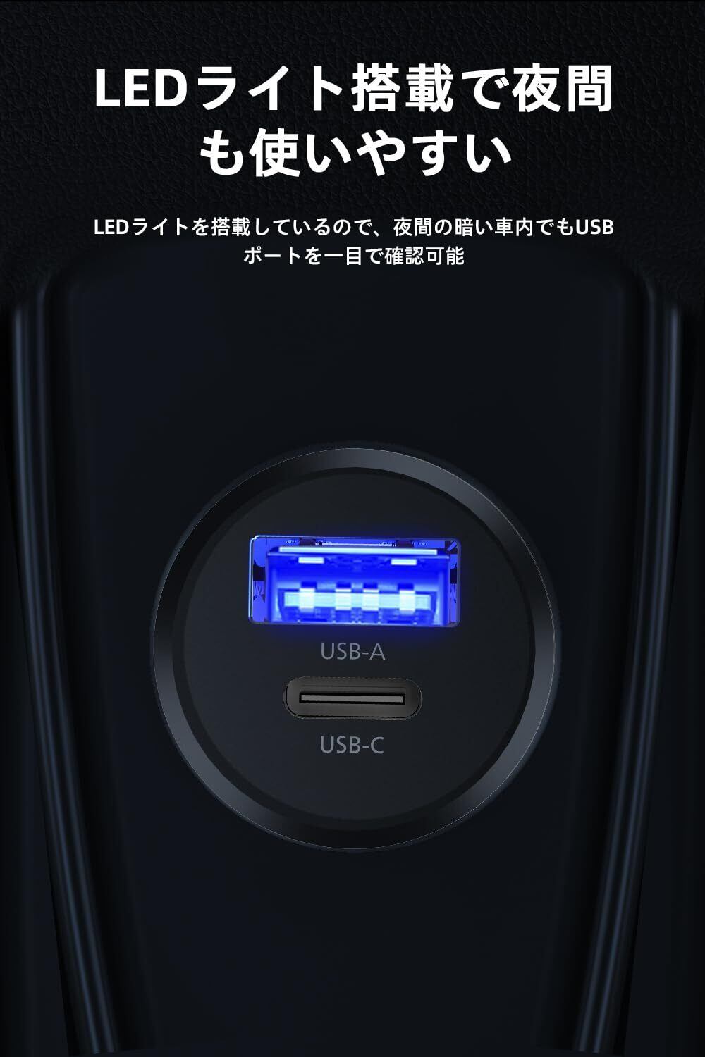 巧妙な設計:USB-AポートはLEDライトを搭載し、夜間の暗い車内でもを一目で確認可能です。両側の滑り止め性能が強化されたカーチャージャーです。悪い道でも安定した充電が可能になります。