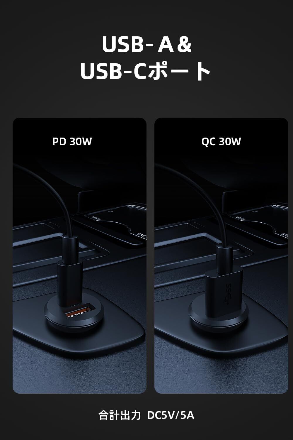 特徴 12V/24V車両対応, PD&QC充電, マルチデバイス充電, 軽量デザイン, 高速充電