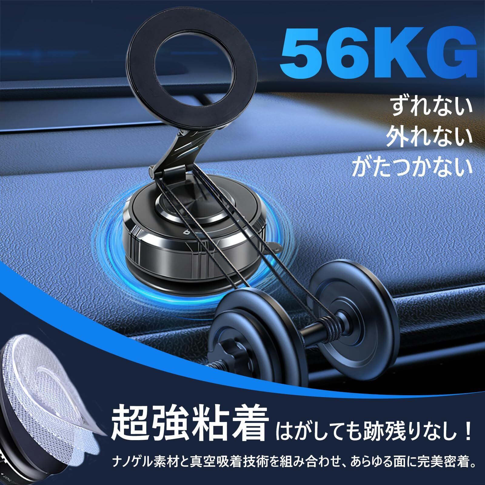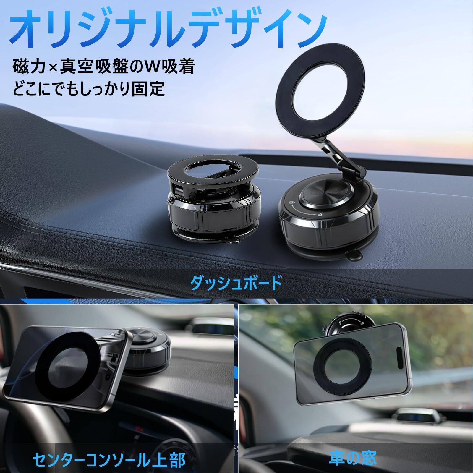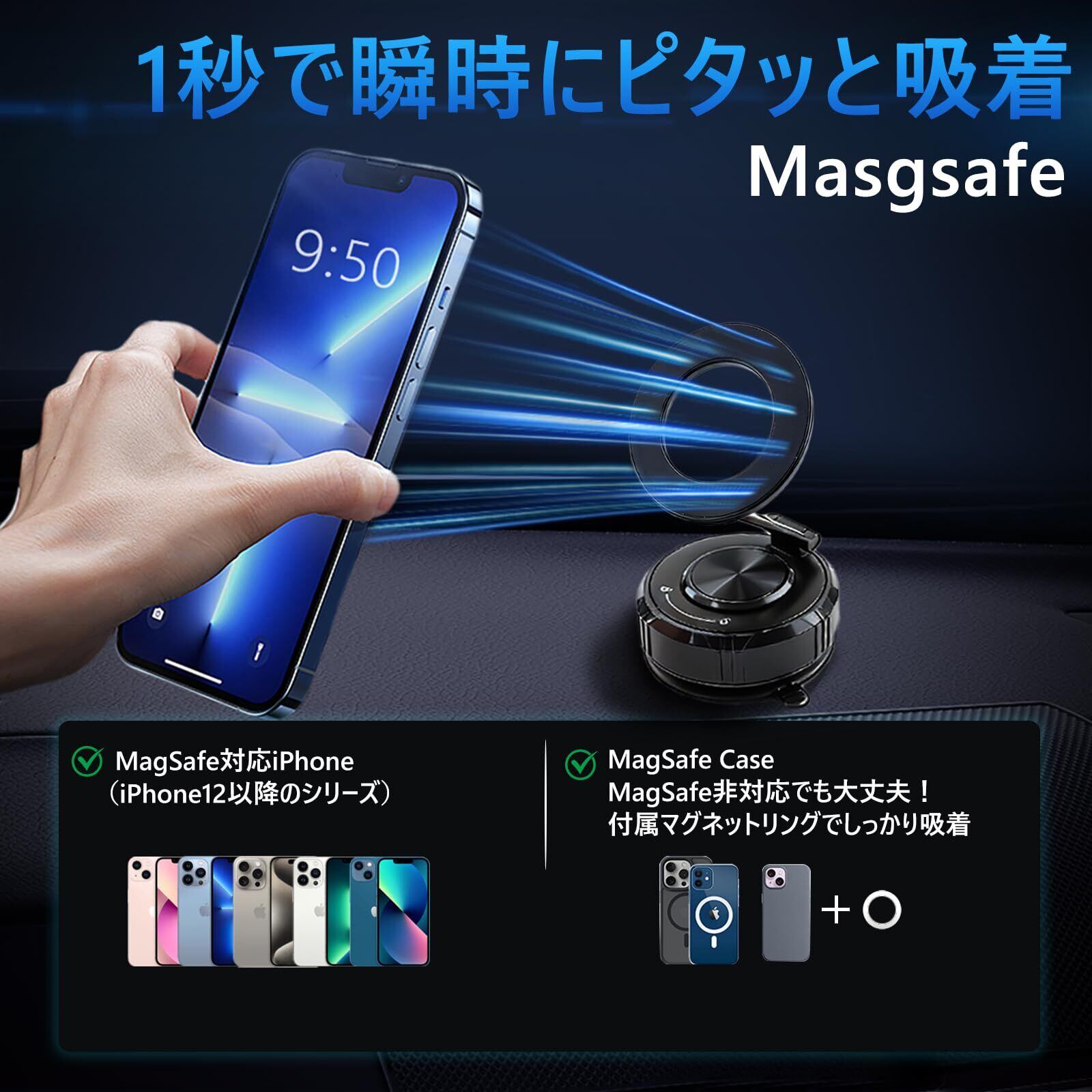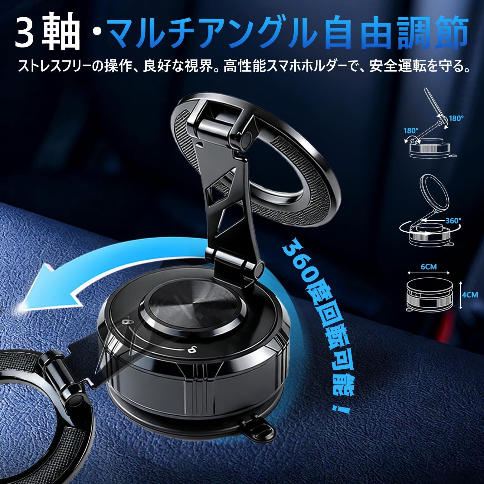 スマホホルダー 車 マグネット/車用スマホスタンドMagSafe対応・強力真空吸盤&N55マグネット24個搭載で車 スマホスタンド として強力固定・Mag-safe 車載360°自由調整三軸アーム・ワンタッチ着脱・折りたたみ式 航空合金製・iPhone/Android全機種&多車種対応