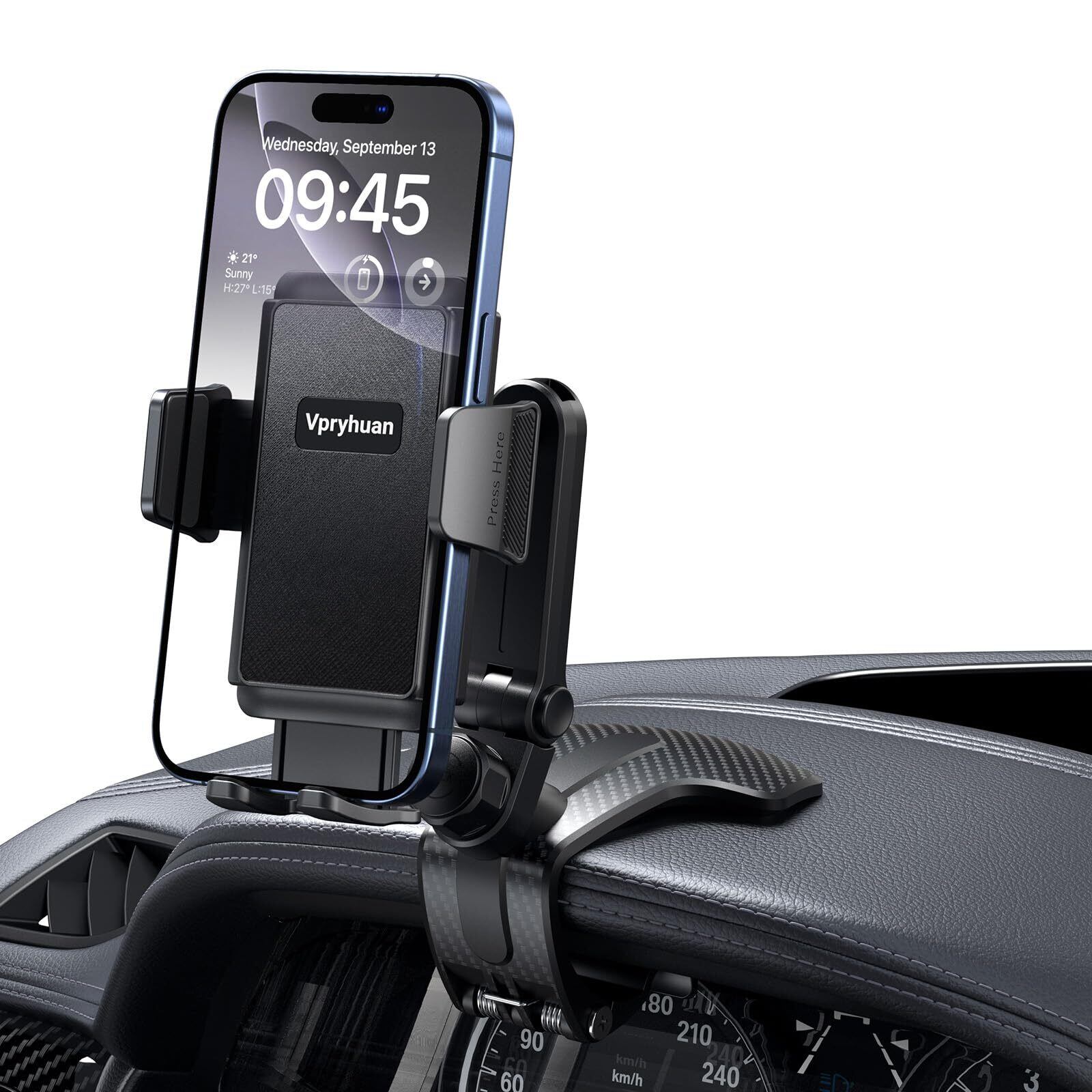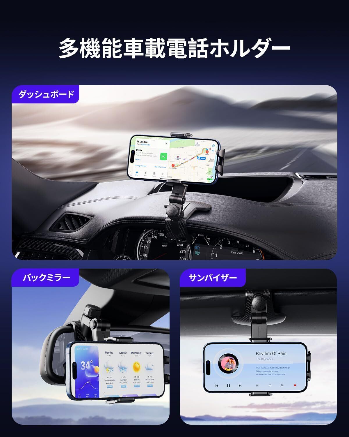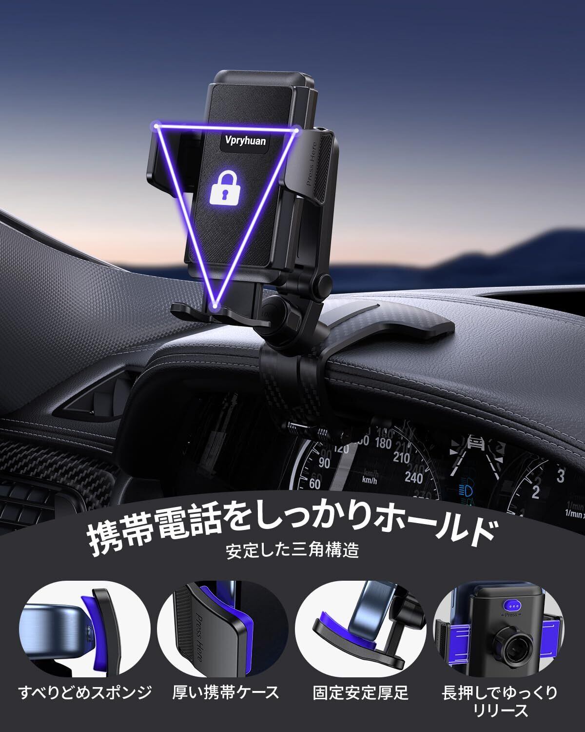 [ダッシュボード多目的マウント]:Vpryhuan車載ホルダーはダッシュボード/ルームミラー/サンバイザーに設置可能。縦横切り替え機能でカーナビ視界確保&動画視聴角度自由調整。