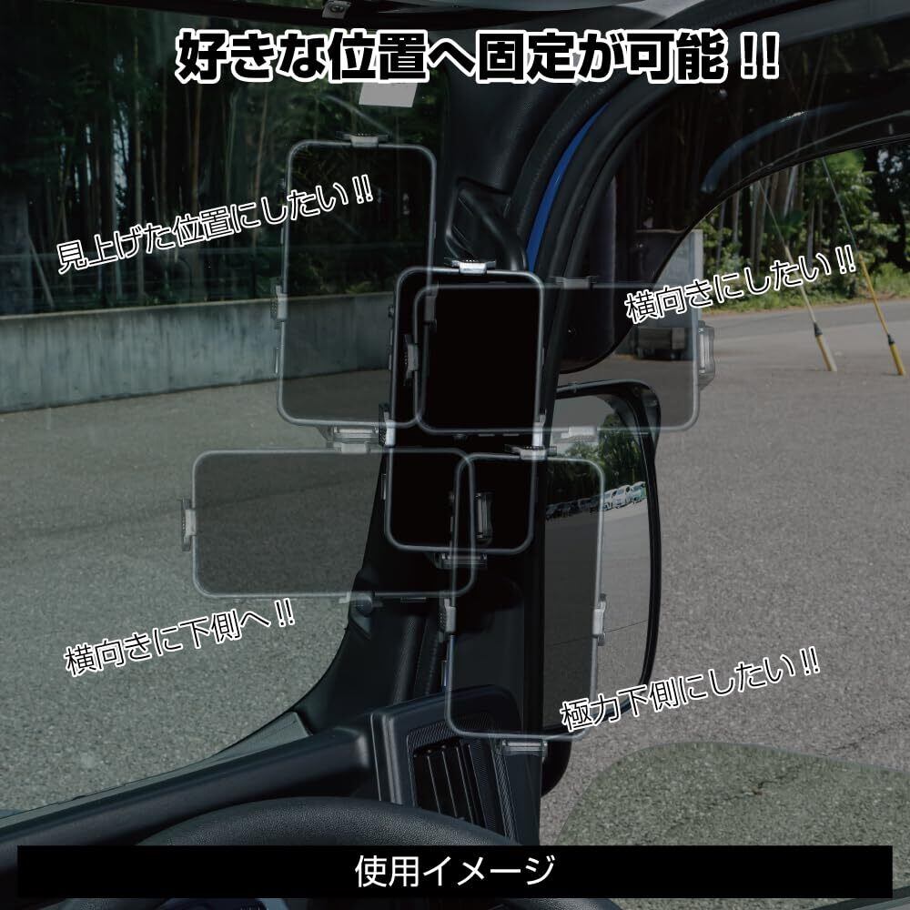 取付位置から上のほうに、下の方に、横へなど、スマホの向きもタテ置きヨコ置きと好きなように固定できます