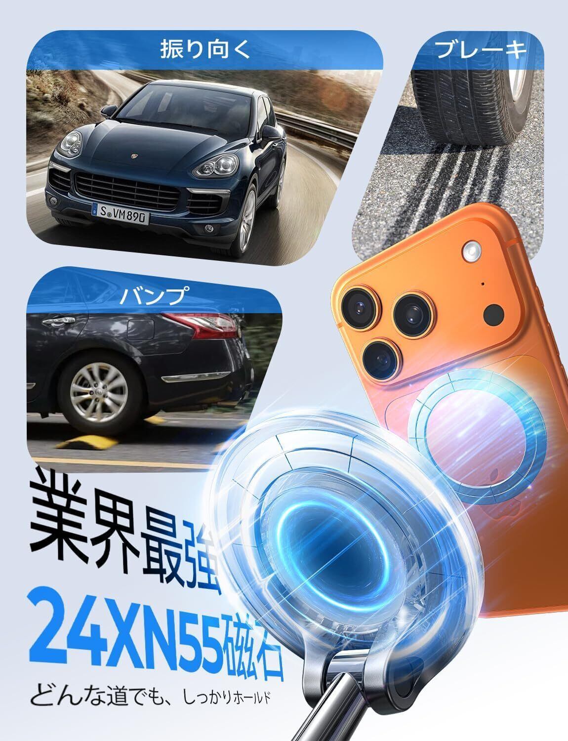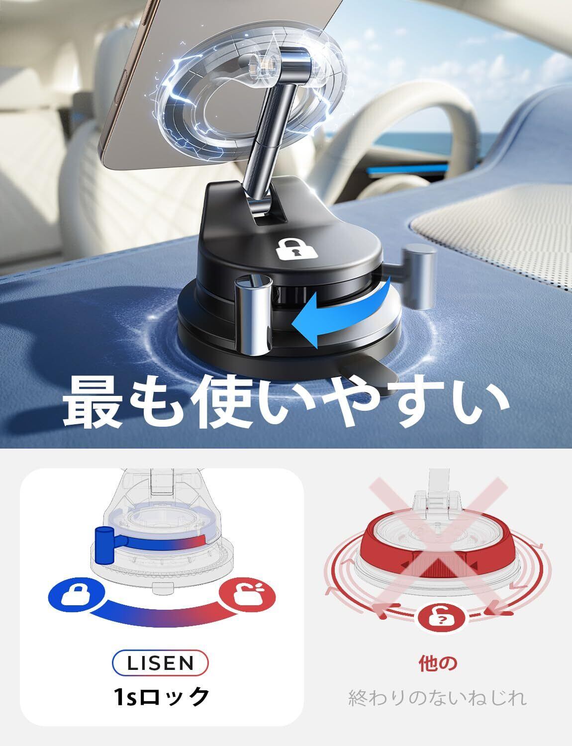 LISEN スマホホルダー 車 マグネット車載スマホホルダー Magsafe 車載ホルダー 24×N55磁石 ネイルを保護する 3軸回転 多角度調整 片手操作 0.1秒で着脱 レバー固定 洗って再利用できる 軍用グレード吸盤 バレンタイン ギフト iPhone Air 17/16/15/ Pro Max&Android