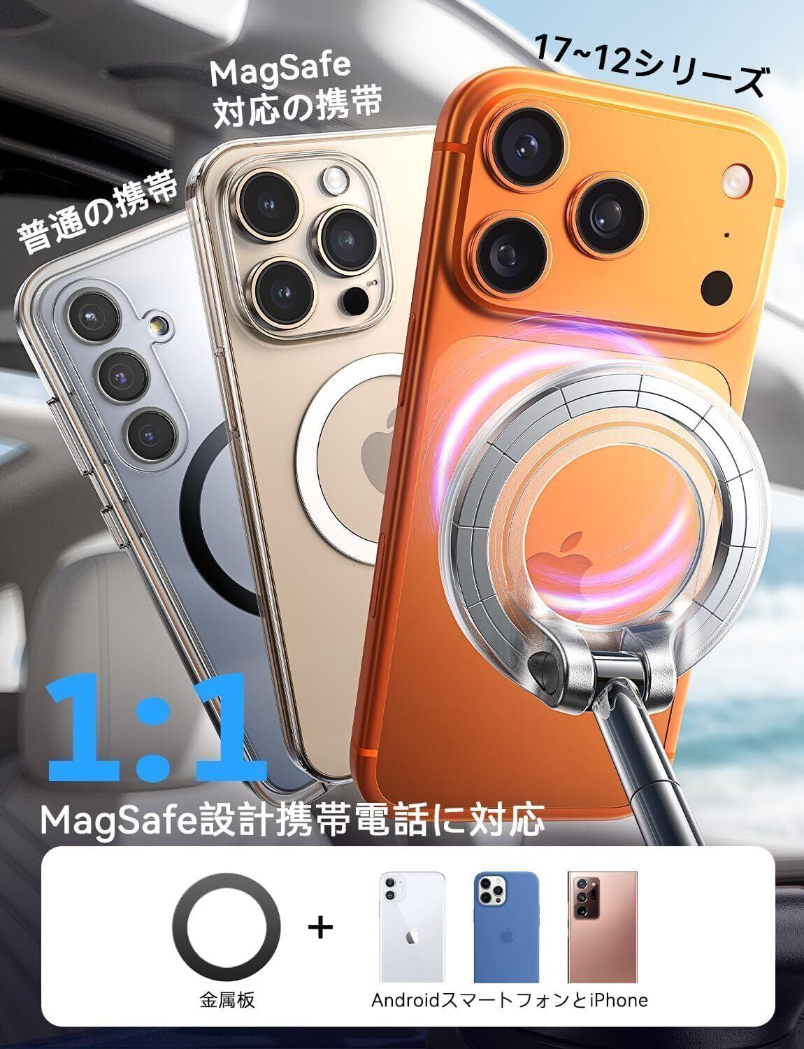 【0.1 秒磁気吸着技術|全シーン対応のマルチデバイス互換】本 magsafe 車ホルダーはスマホを近づけるだけ 0.1 秒で装着、サイドスライド式設計が誤操作を防ぎネイル利用者も安心。片手で素早く着脱可能で、ダッシュボード・フロントガラス等に吸着、99%車種に対応。iPhone12-17 シリーズや正規 MagSafe ケースが直接吸着、Android 機種も広く対応、車内・オフィス・家庭で活躍する 3WAY 仕様。