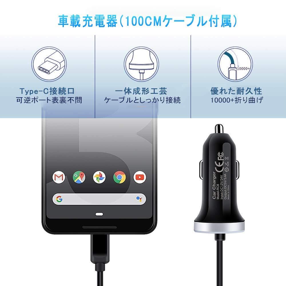 【Type-Cケーブル一体型】 このシガーソケット充電器には、高品質のタイプCケーブルが1本付属しております。1メートルの長さで、運転席だけでなく、後部席も楽に使用できます。ケーブル内部に高純度銅製心線を採用し、充電速度がより速くなり、更に、Type Cのプラグ内に56KΩの抵抗を実装するため、安全性を確保する同時に、充電時間も短縮できます。