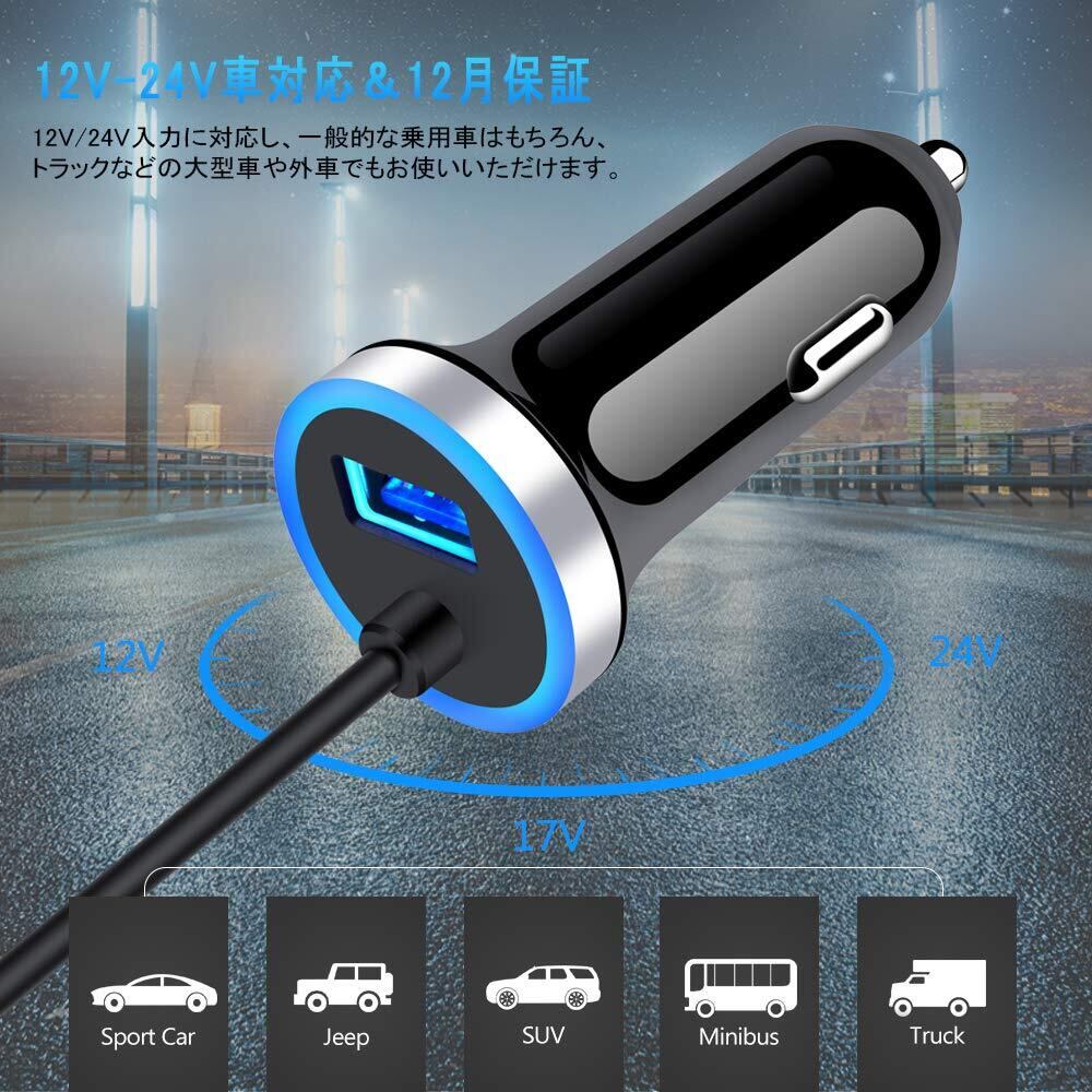 カーチャージャー USB Type-Cケーブル付き iphone16 シガーソケット 急速充電/2ポート/12V・24V車対応 iPhone 17向けの車載充電器 車 usbソケット タイプC充電ケーブル シガーusb充電器 USB車 充電器車用 iPhone 16/iPhone 15pro/Andriod/iPad対応