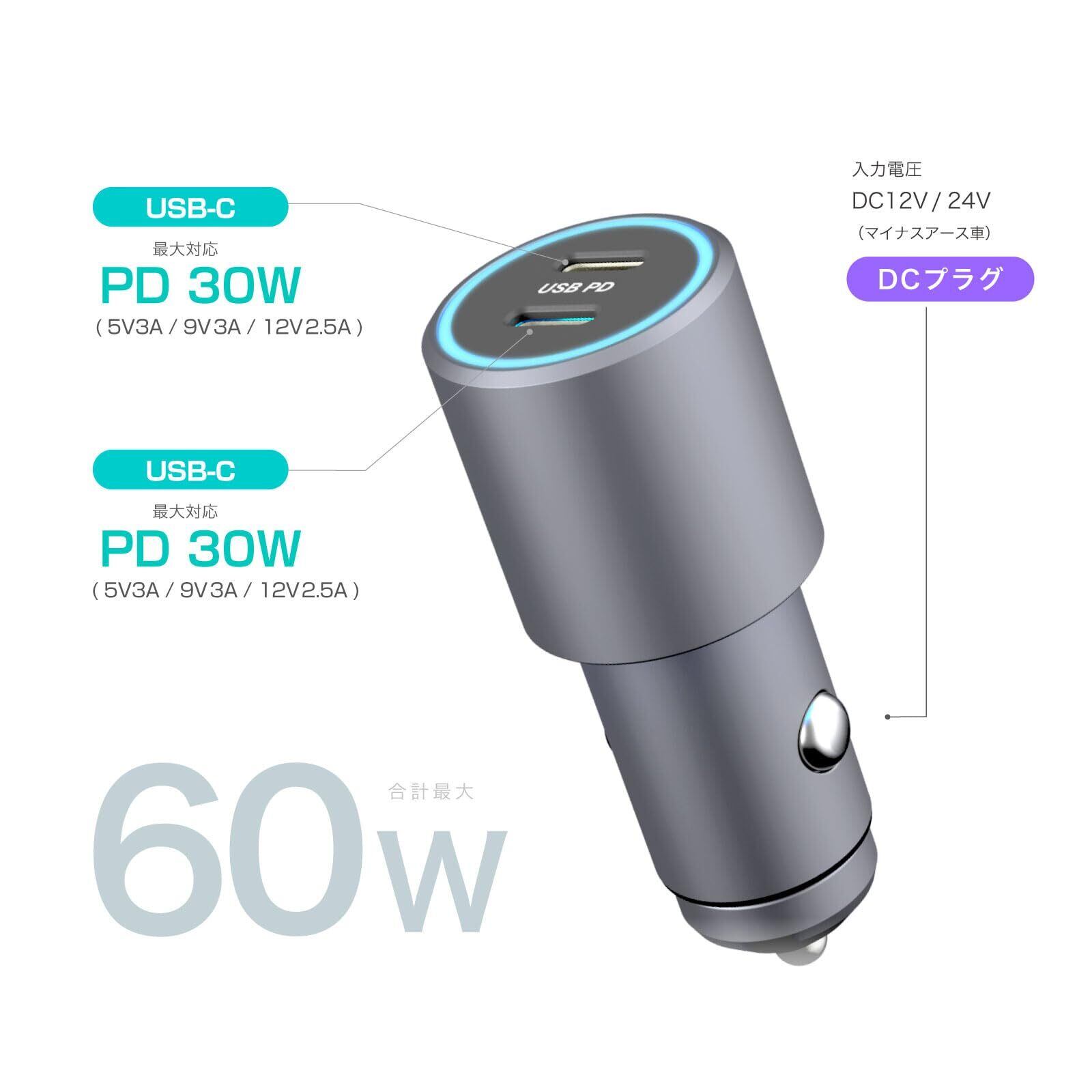 合計最大出力 60W / 2ポート同時にPD30W出力可能