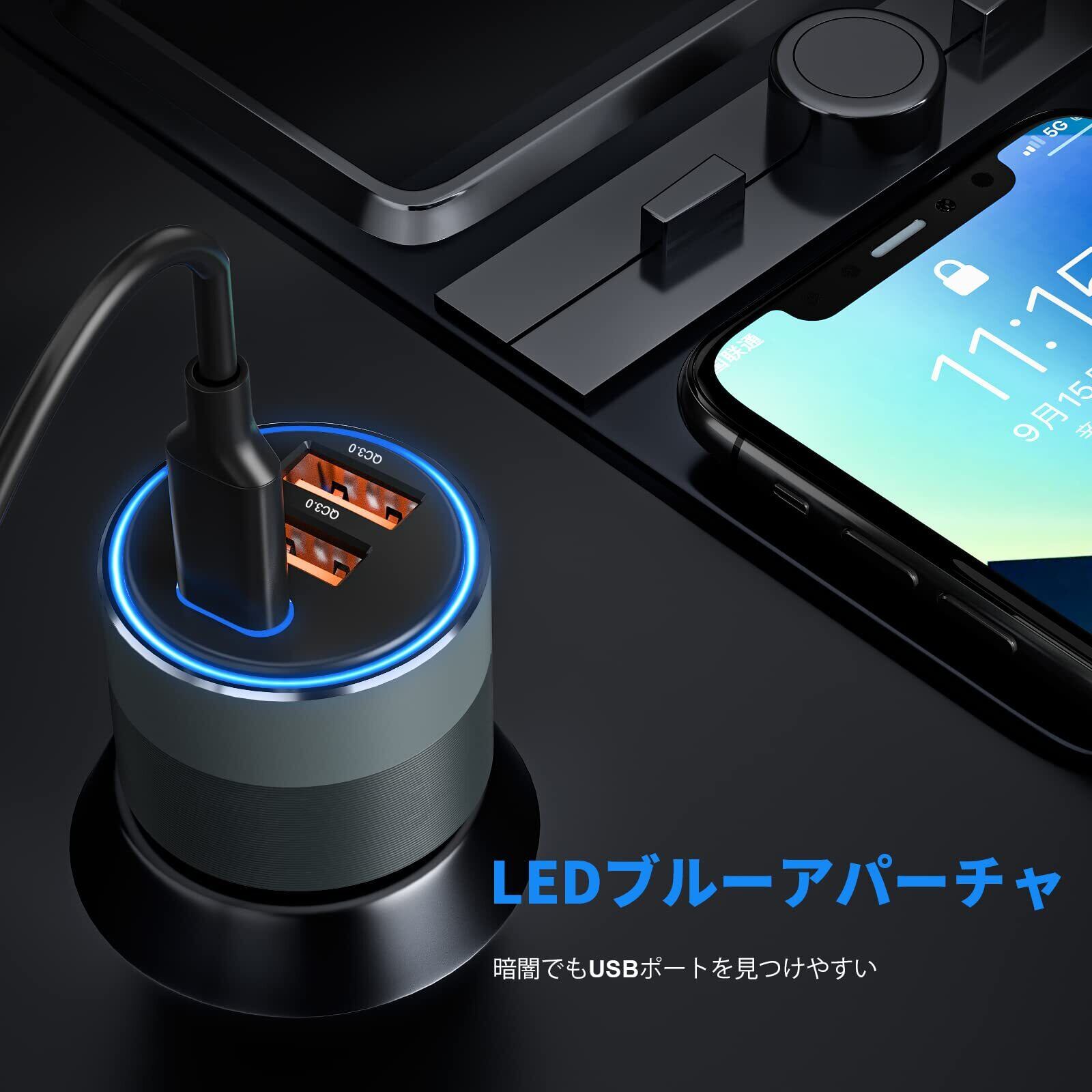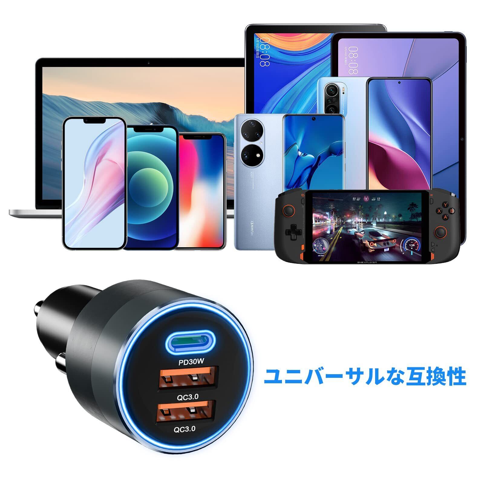 SONRUカーチャージャー,シガーソケット usb 車用急速充電器 PD 30W &デュアルQC3.0 超小型 リングライト付き iPhone 16/15/14/13X/XR Galaxy S22 S21 20 10 9 タブレットなどに対応