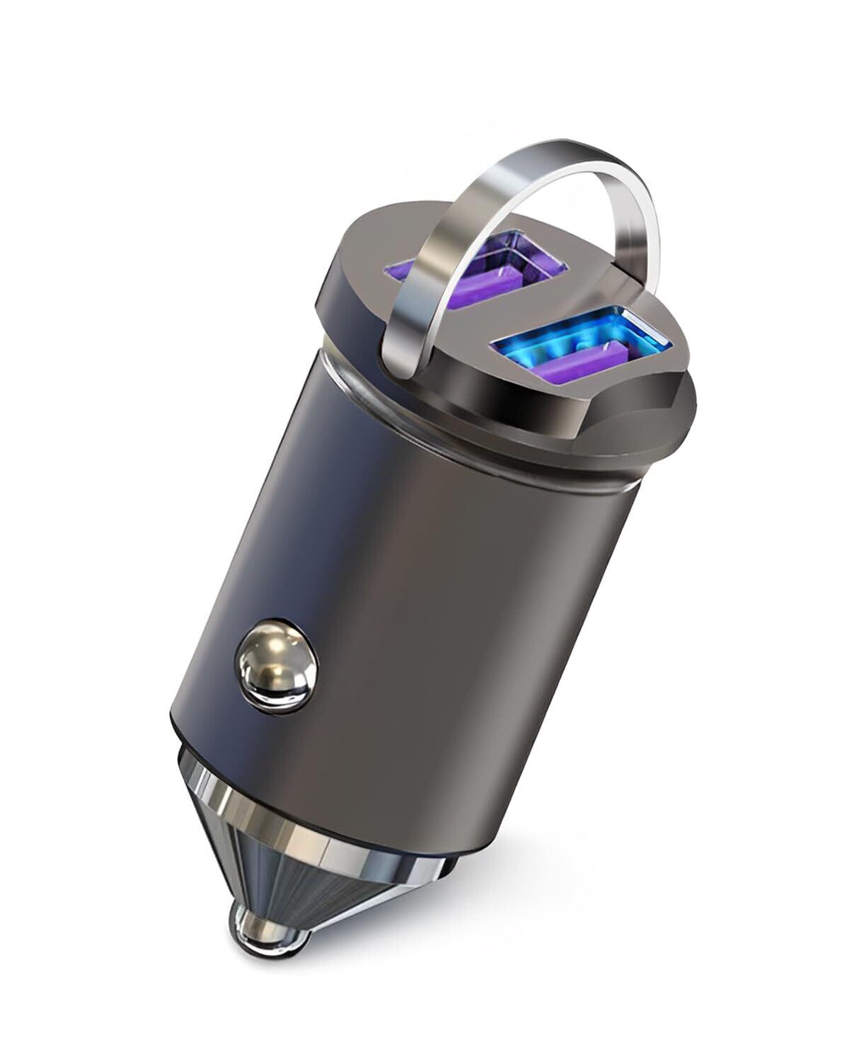 【2026 新設計】2024 新デザインのデュアルUSBカーチャージャー。車内のスペースを邪魔しない超コンパクト設計。取り外しが簡単な金属製プルリング付き。