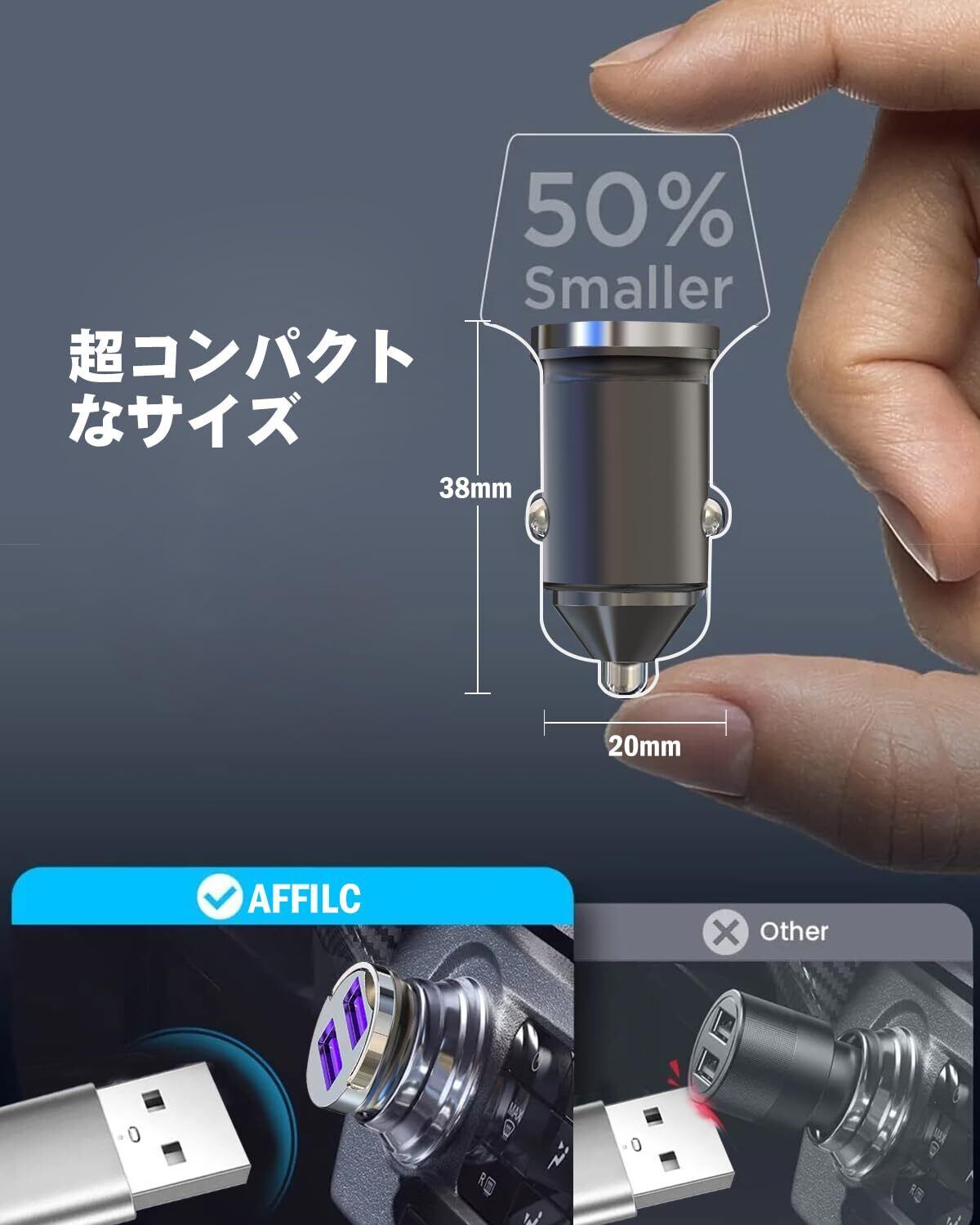【シガーソケット】シガーソケット usb 急速充電 カーチャージャー 車 充電器[QC3.0/金属/軽量] AFFLIC USB 2ポート合計36W 車載充電器12~24V車対応 iPhone/Android/iPad対応。