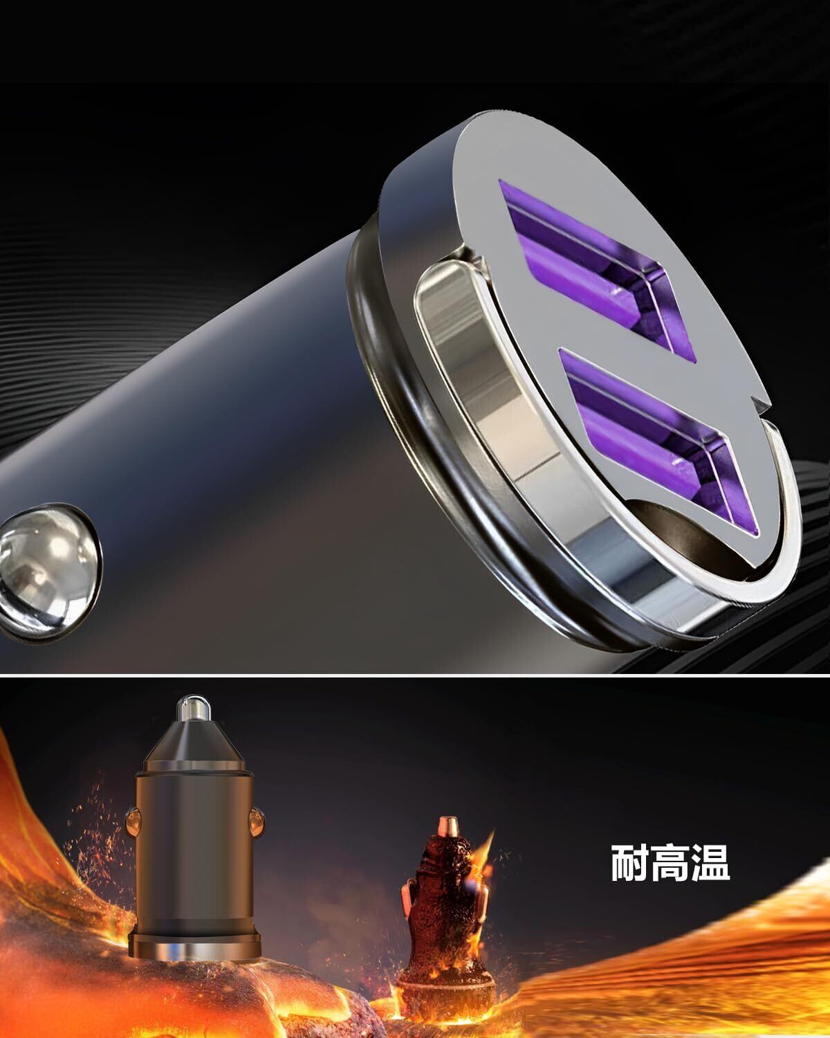 【全身金属耐久性】シガーソケットUSBは傷に強く、軽量で丈夫な亜鉛合金製で、メタリックなデザインで車内を引き立てます。そのデザインと質感は高級感を与えます。