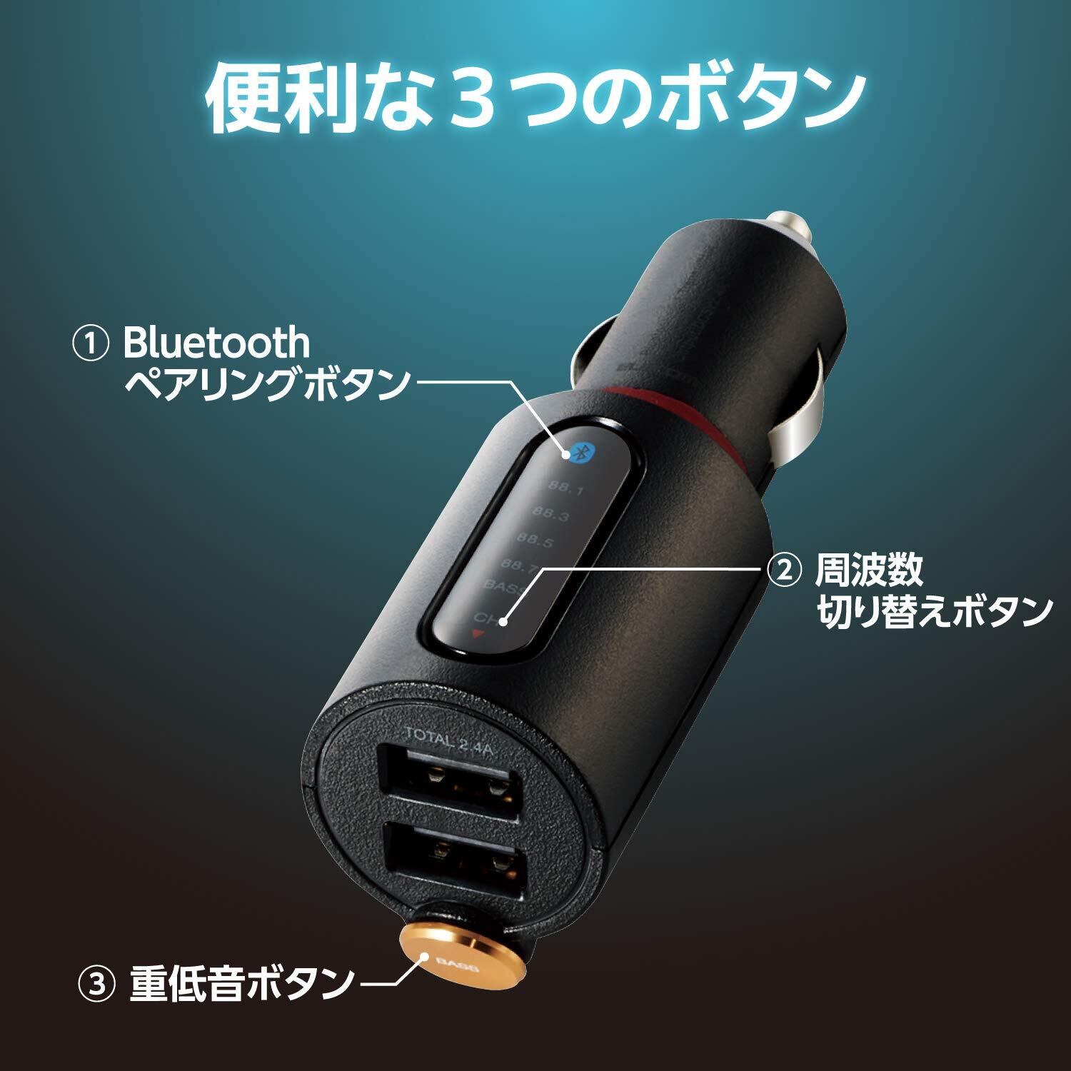 ■スマートフォンやタブレットの音楽を車の中でワイヤレスで楽しめるBluetooth(R)FMトランスミッターです。